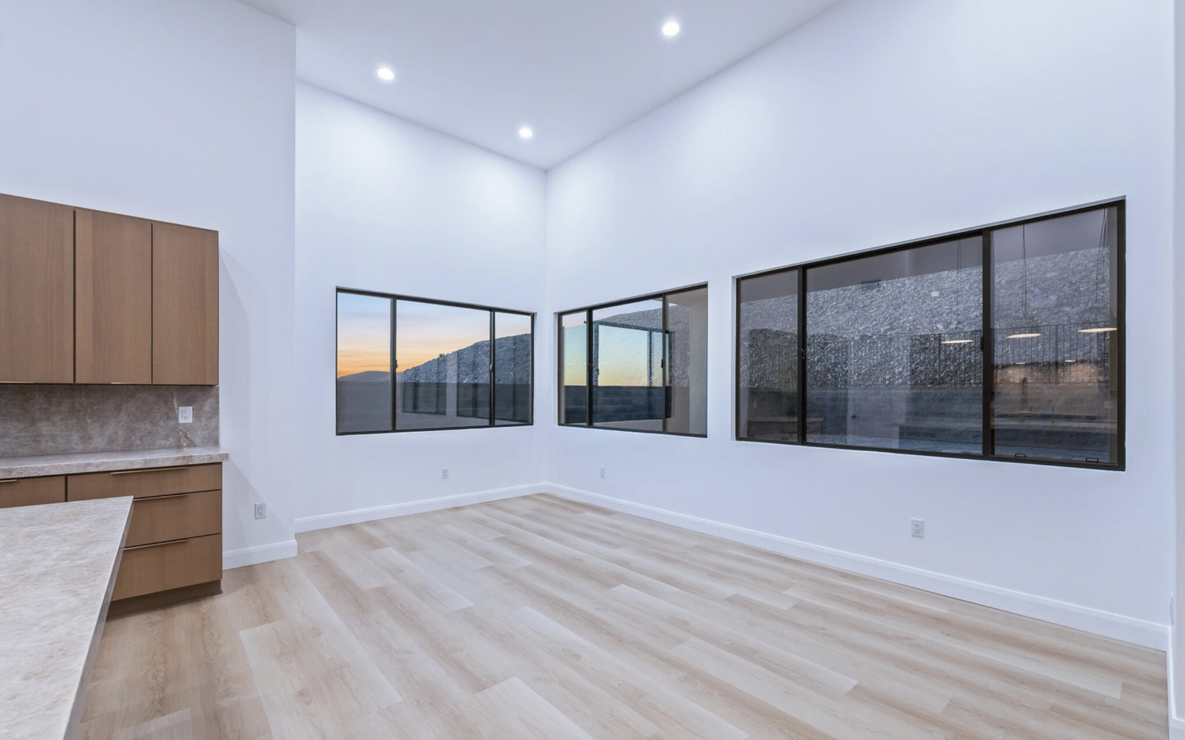 modern high end dinning room furniture keep original window do not add light fixtures