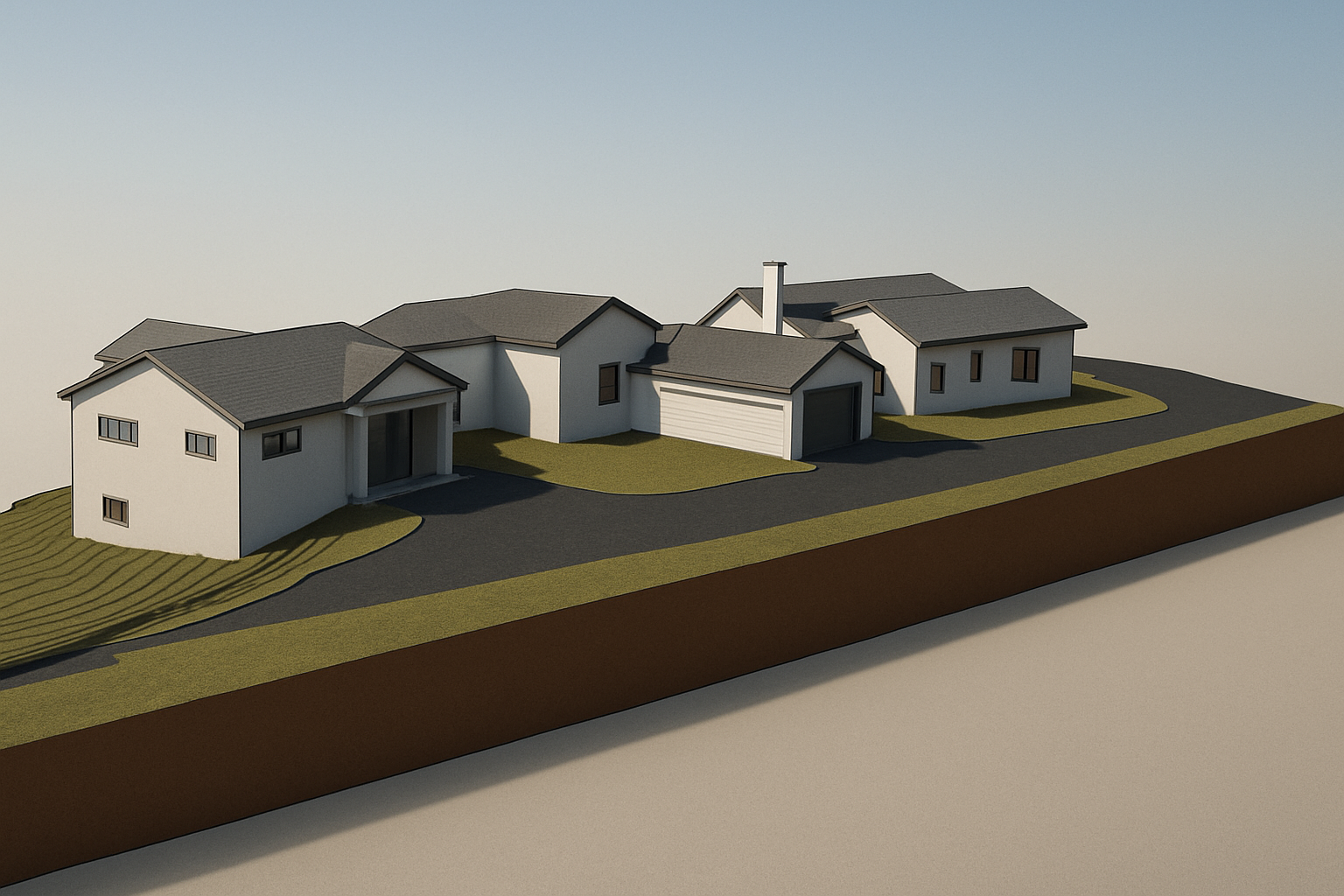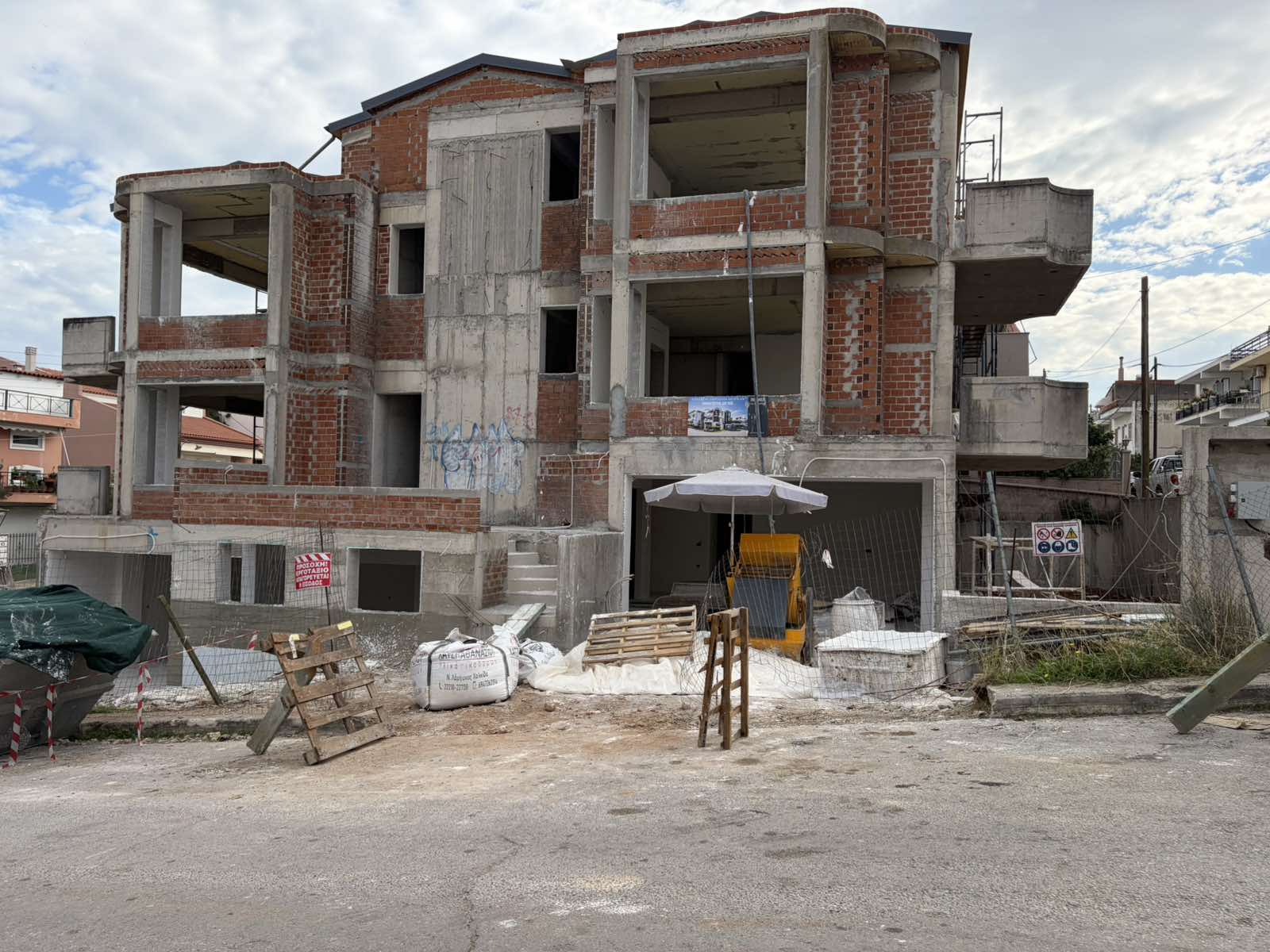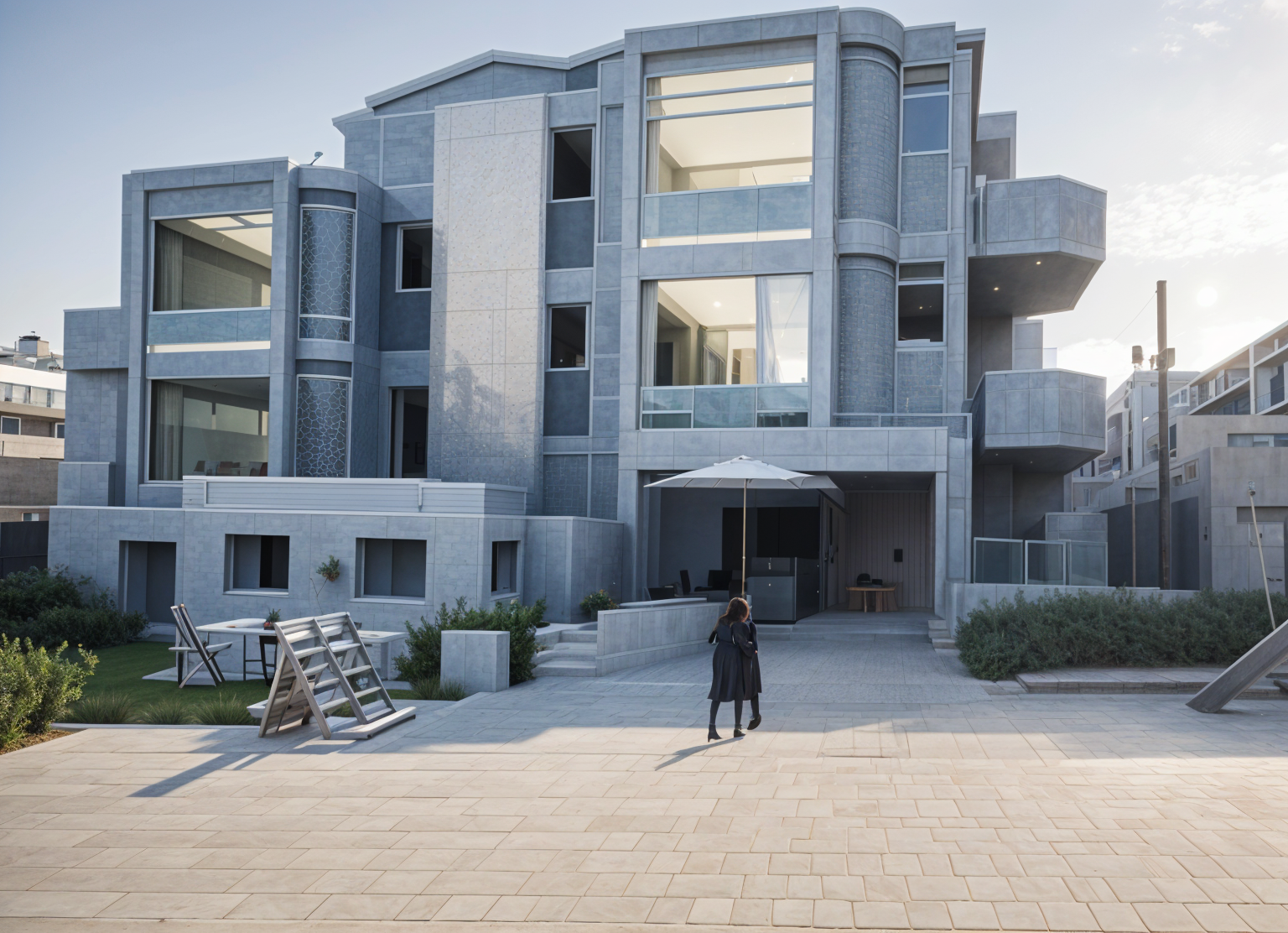 bauhaus exterior shot please show the building as finished with windows doors etc and colored with smooth colors architecture