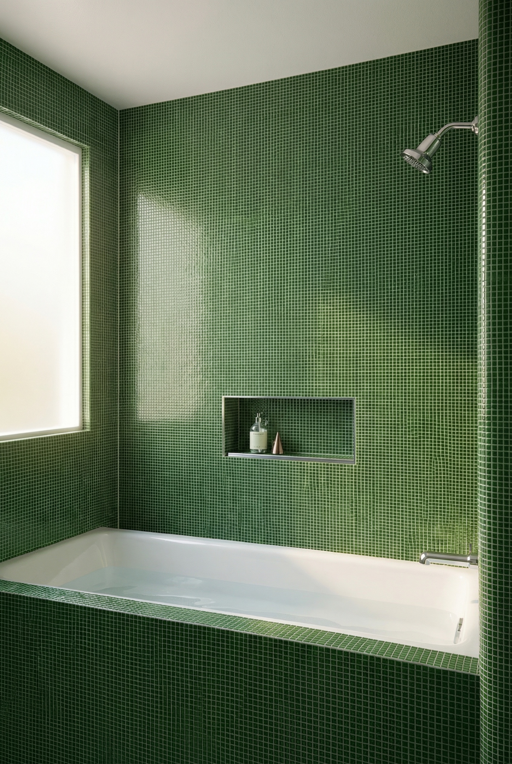 exterior shot use this tile and frame the window in wood the whole entire tub in this tile