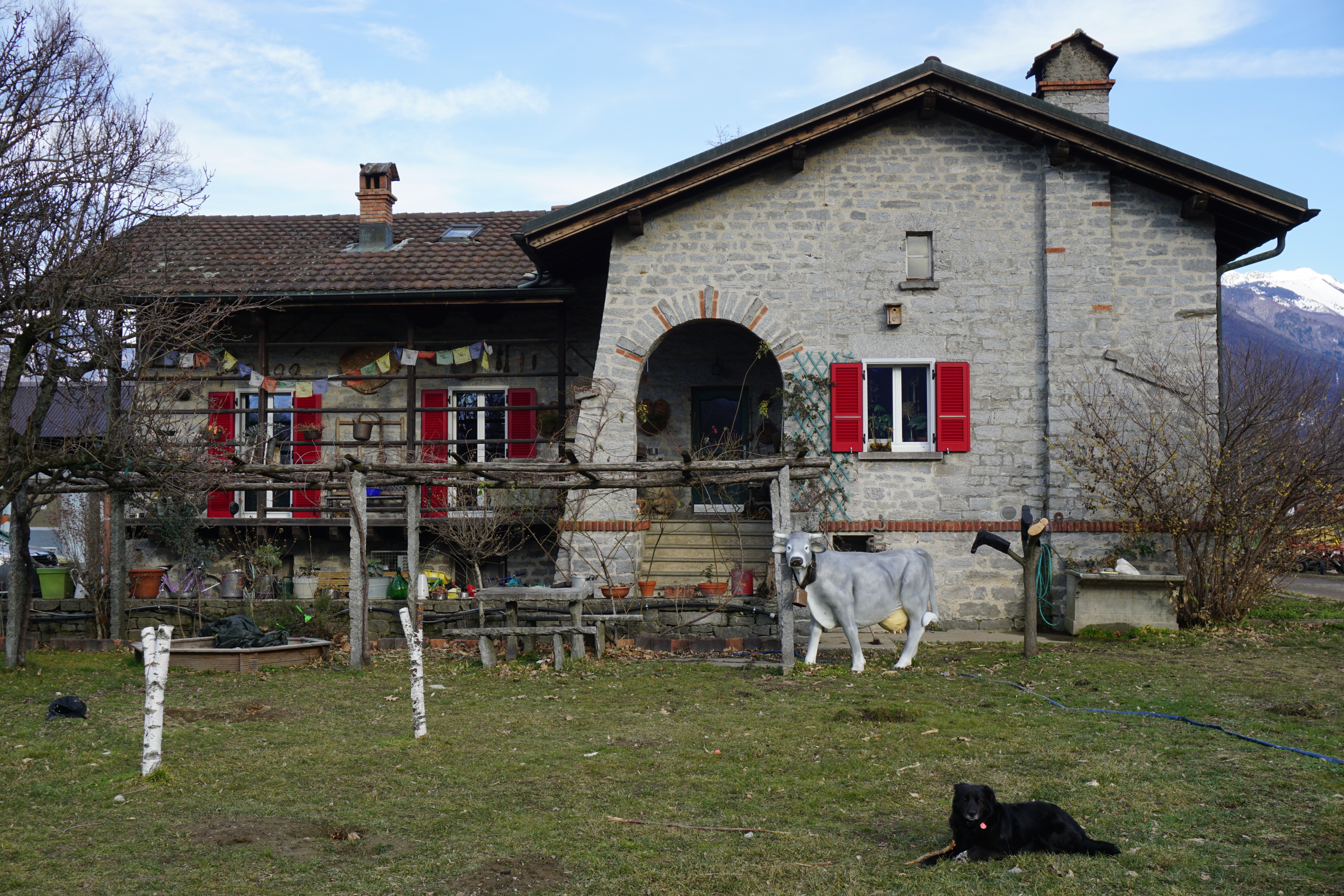 change the materiality of the roof of the farmhouse to a bitumen roofing sheets make the bitumen lines just vertical not horizontal the facade remain the same as the original image create 3 window skylight opening on the roof to the left