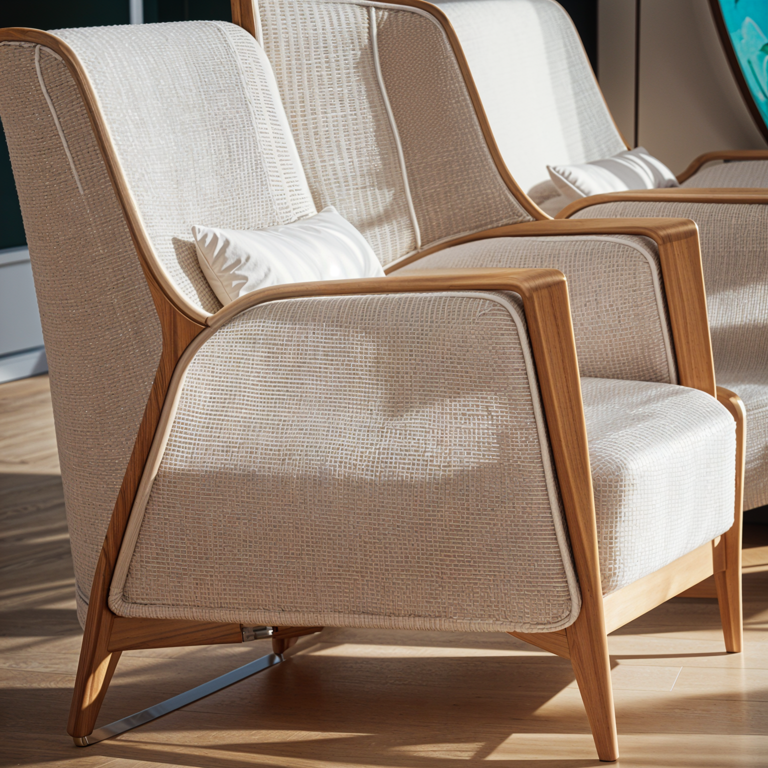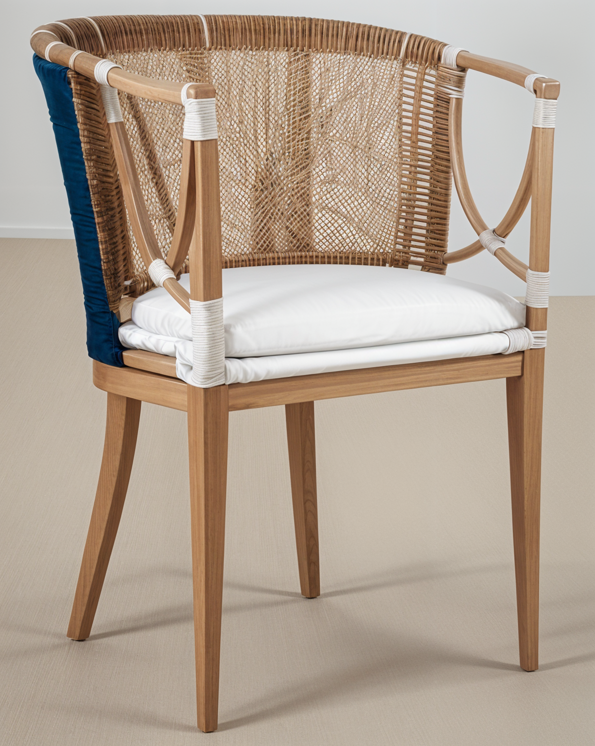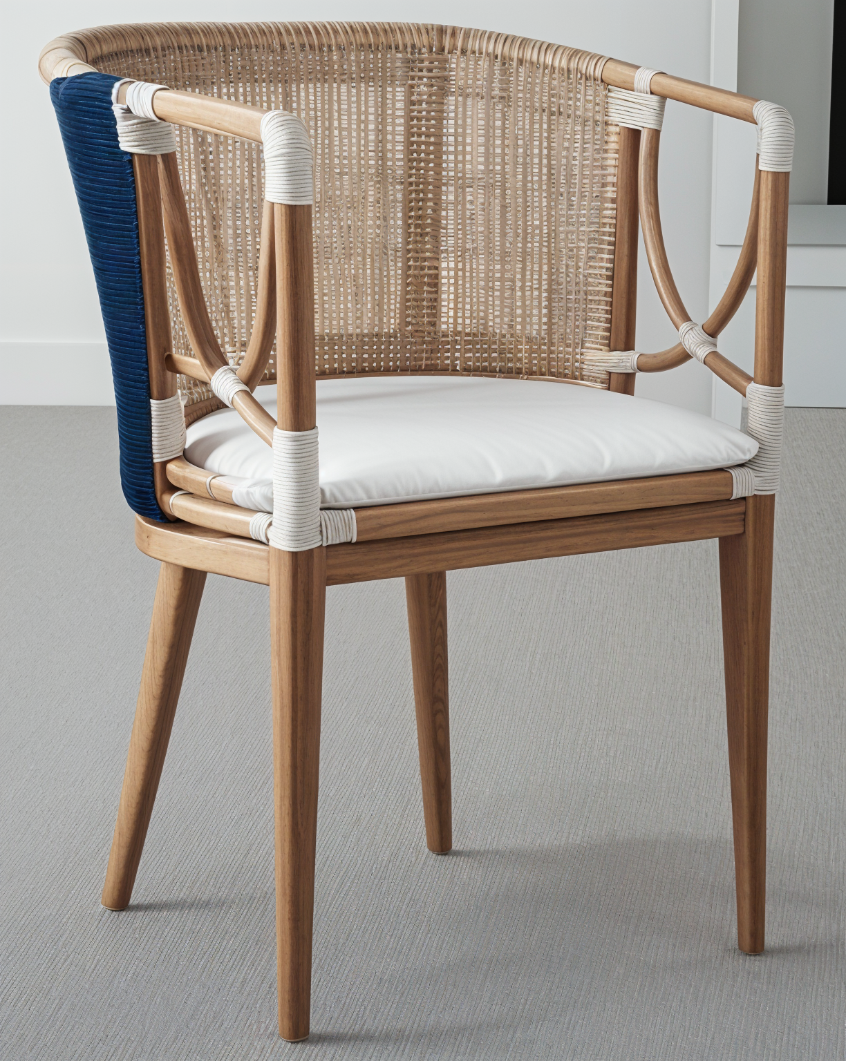 modernist perspective shot weaving inspired back chair wooden legs finish upholstered seat and back architecture