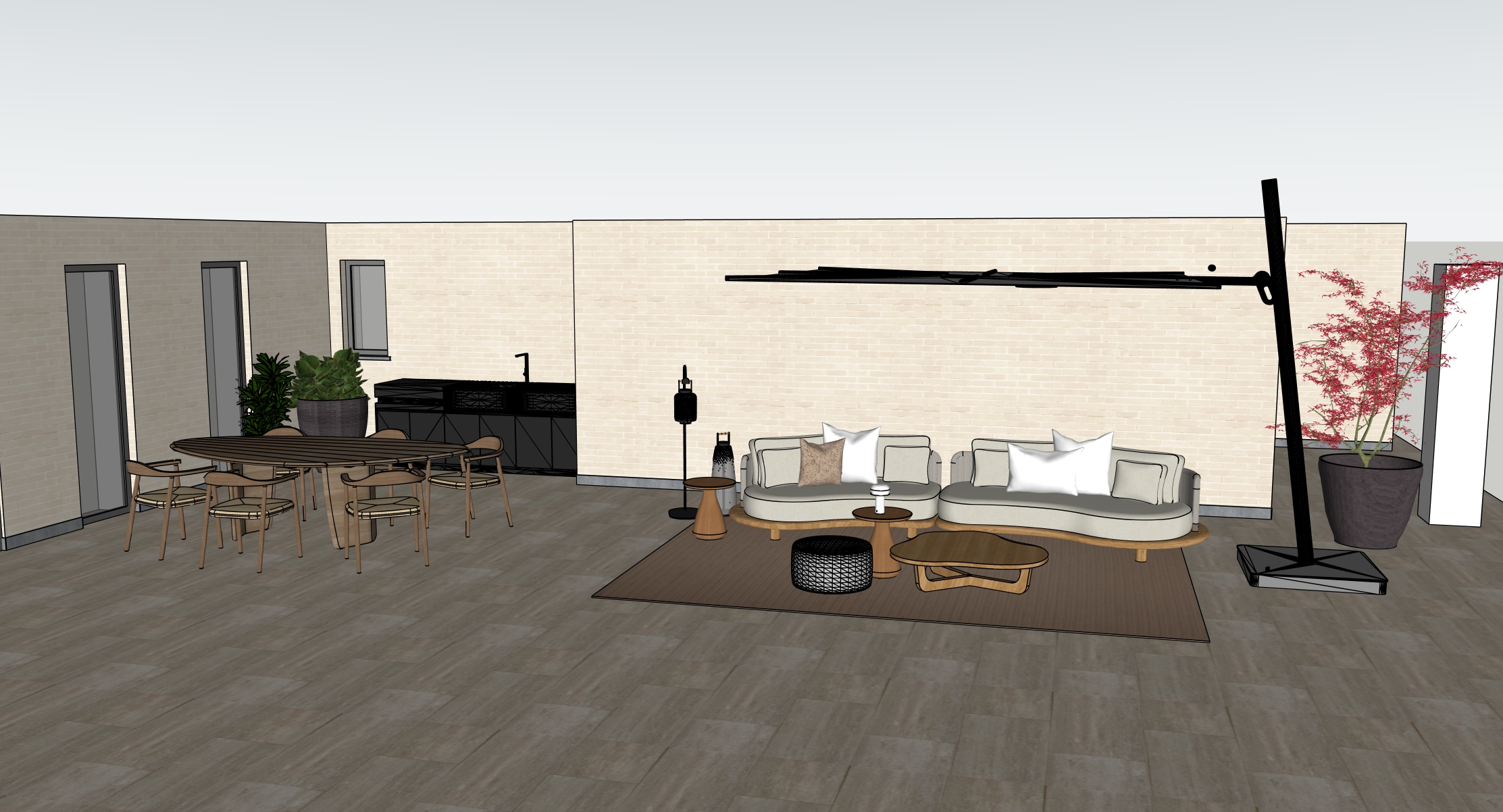realistic render sunny day belgium terrace is surrounded by gras and trees on the right on the left house keep proportions