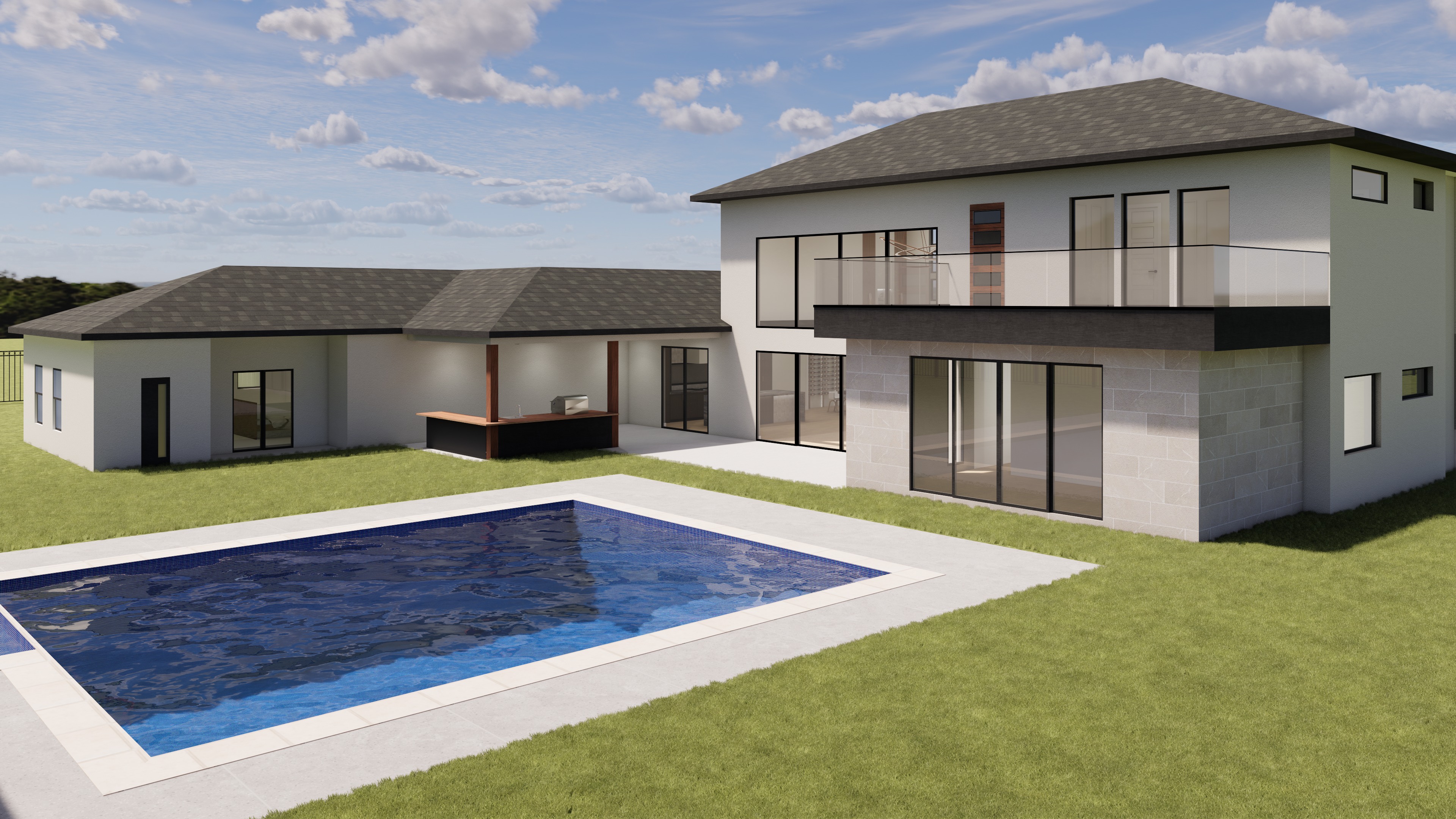 modern elegant badass backyard less hardscape and the grill station with island