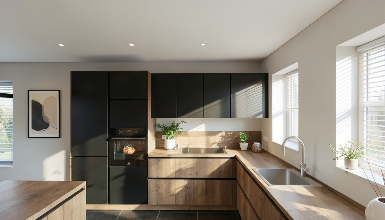 create a realistic rendering of this image the left side of the image should have land sloping down to water use the trees as grade reference the right side has a treeline the top is a yard followed by a 2 lane road