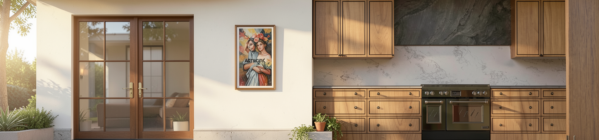 don t change textures colours and volumes add a few objects on the tables add one small plant in the back light is warmer and bright