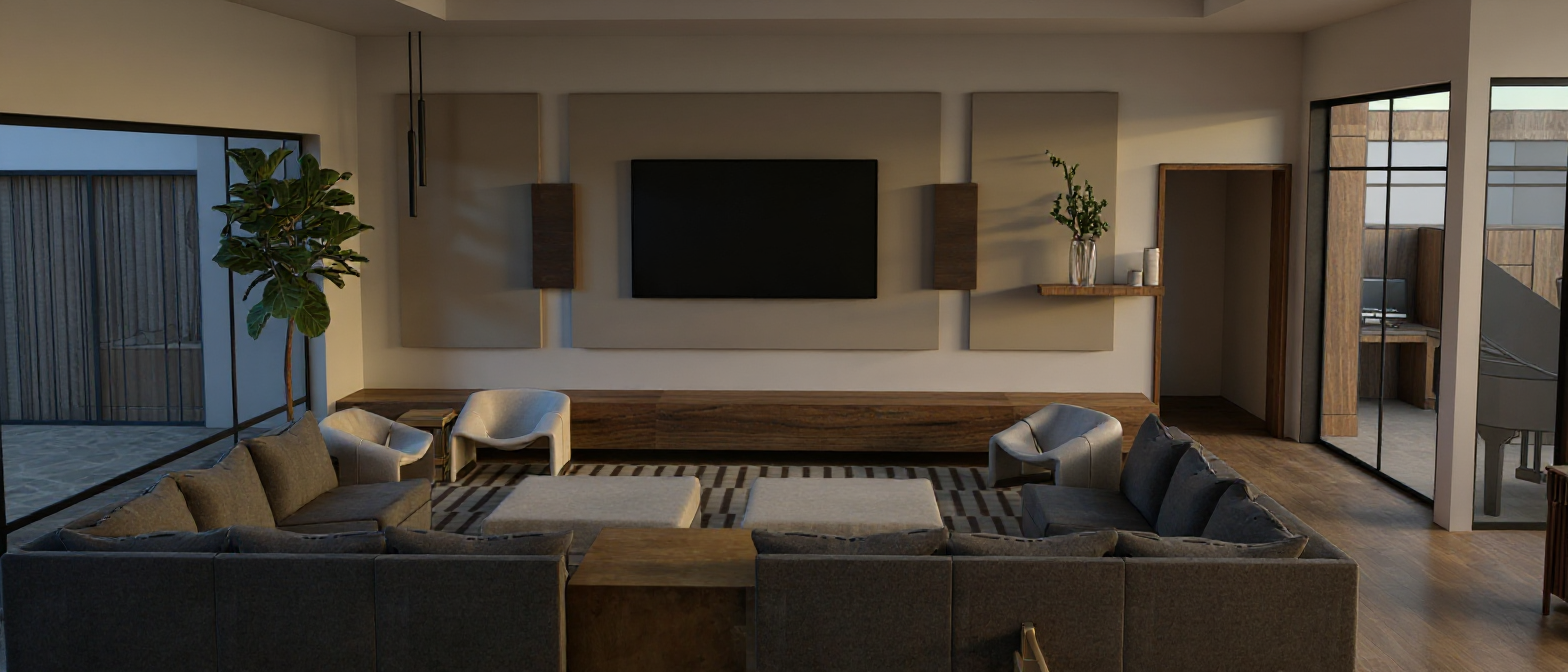 create a render make the rug light cobalt blue and rectangle make the baseboard height 8 inches make the background color black and white make the coffee table olive green stain