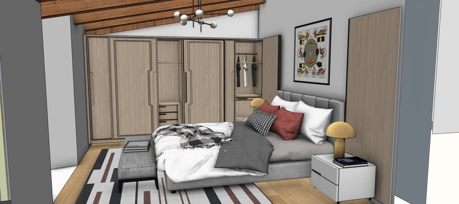 realistic rendering grey wardrobe