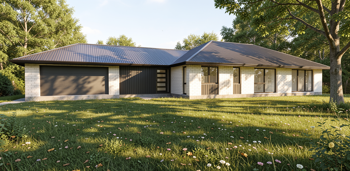 place the black wrought iron railing along the outer edge of the stairs following the natural slope and flow of the stair line the railing must run continuously along the stair edge and not be positioned in the middle of the stair treads all posts should sit at the edge of the masonry stair structure aligned with the retaining wall use a clean modern wrought iron style with vertical balusters and a matte black finish maintain realistic lighting perspective and scale do not change the stairs or landscaping starting from the walkway match the deck railing to the rod iron