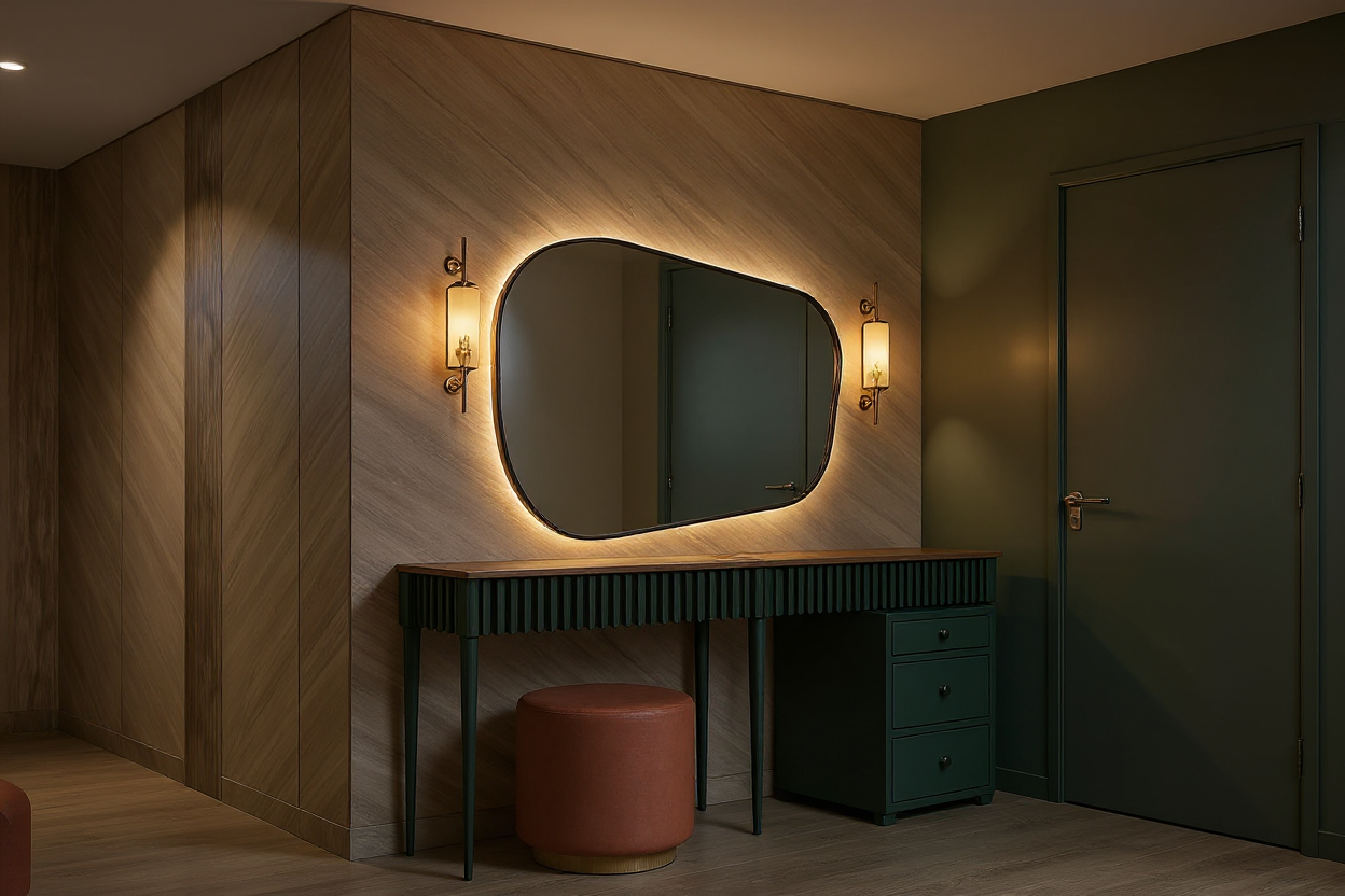 modernist aerial shot modern coworking makerspace bike experience warm morning light ambience light tones wooden details architecture