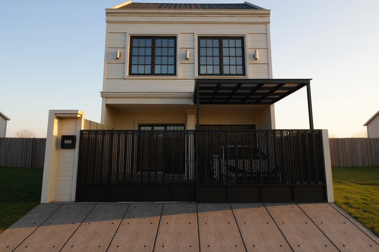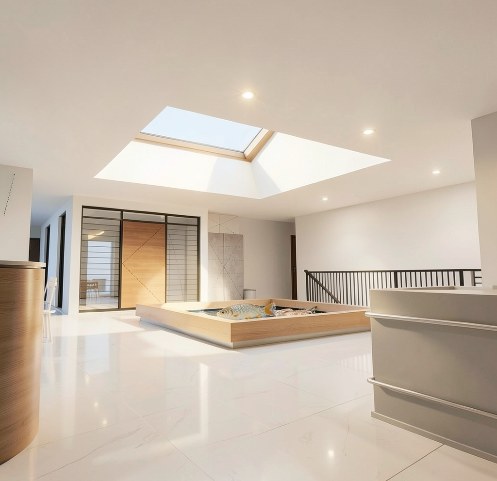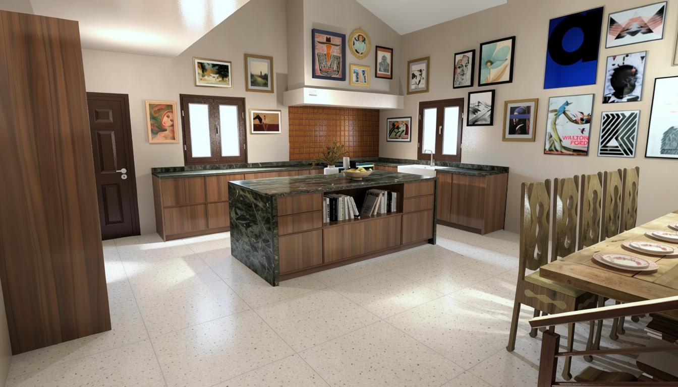 insert a single storey ground floor only medium sized three bedroom house within the triangular plot shown in the aerial image fully respecting the exact shape limits and orientation of the land the house should have a compact and well proportioned footprint and be positioned to face the road adapting naturally to the terrain the architectural style should be traditional inspired by portuguese vernacular housing with white plastered fa ades a pitched roof covered with traditional ceramic tiles stone or granite details on the base and around openings and wooden or wood look window frames the layout should include three bedrooms a comfortable living and dining area a traditional style kitchen and supporting bathrooms all organized on a single level include a modest covered garage or carport integrated into the house design the surrounding land should remain mostly natural and rural preserving existing vegetation with simple paths and minimal landscaping the final image should be a highly realistic architectural visualization shown from an aerial or topographic perspective consistent with the original drone image under natural daylight with no visible plot boundary lines or graphic markings