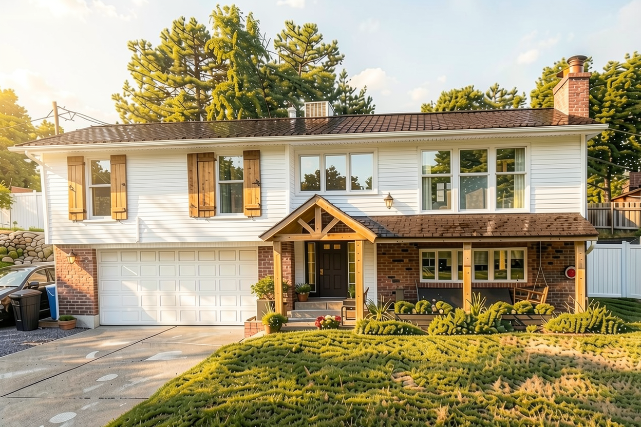 make the siding off white instead of brilliant white make the shingles dark brown matte as well