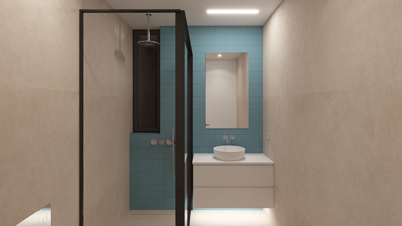 hyperrealistic render improve lighting morning shot add soap on sink counter and a towel hanging from a hook on the right