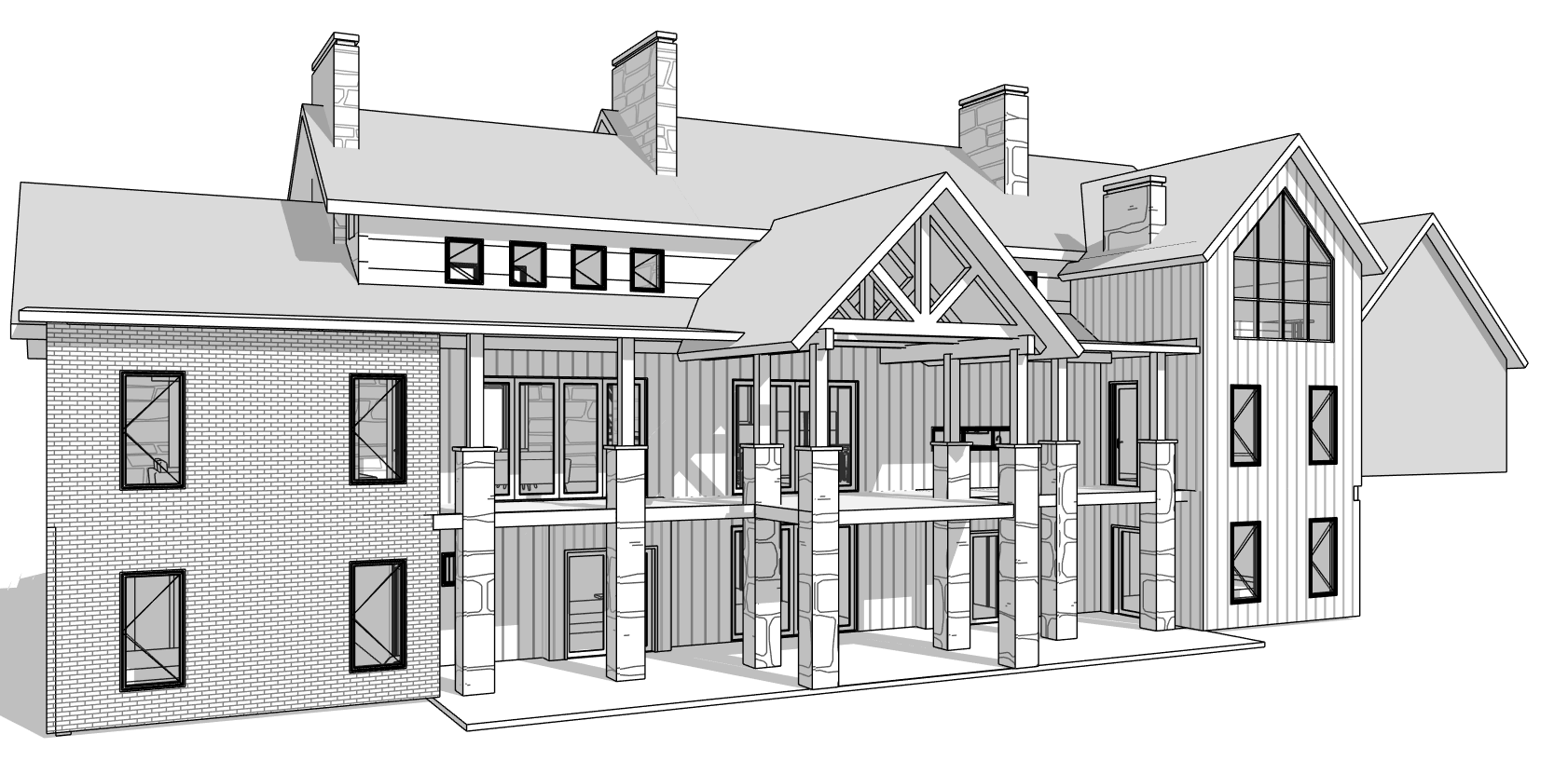 modern farmhouse look with black siding white brick and stone asphalt shingles on the roof
