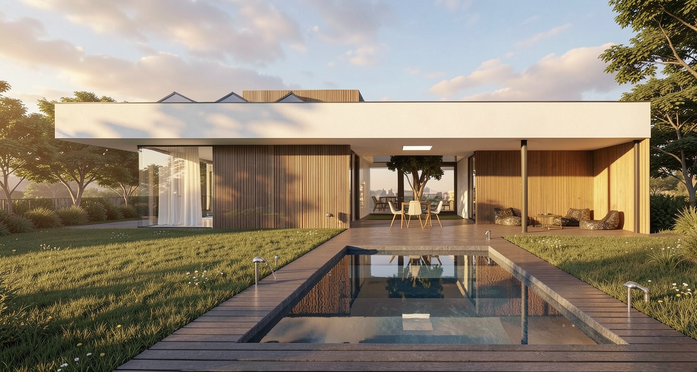 render image add mixed pastel colored lighting coming from the white boxes add mirror texture to the grey boxes