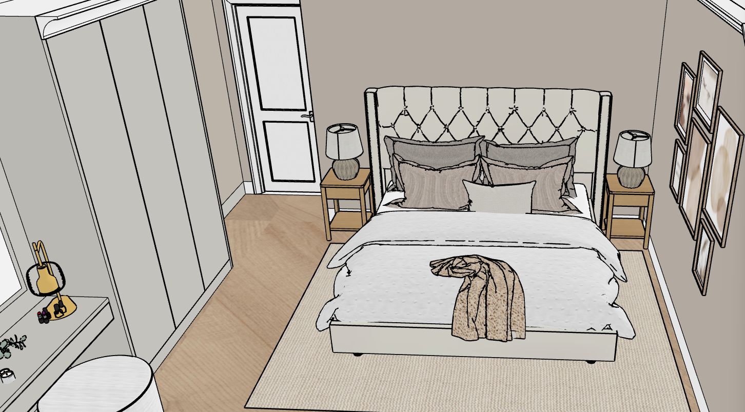 evening light with table lamps on bedside bed