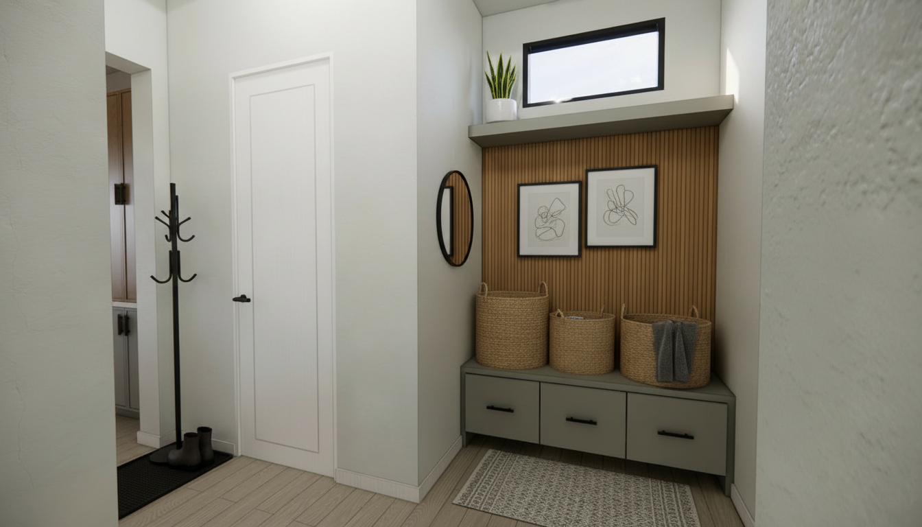 keep everything the same but make the light blue frame around the shadow box in the shower a navy change the vanity light shade to matte white and removed the bar above the toilet the towel bar on the left side has two bars on it remove the hand towel ring floating by the mirror the grab bar in the shower is white