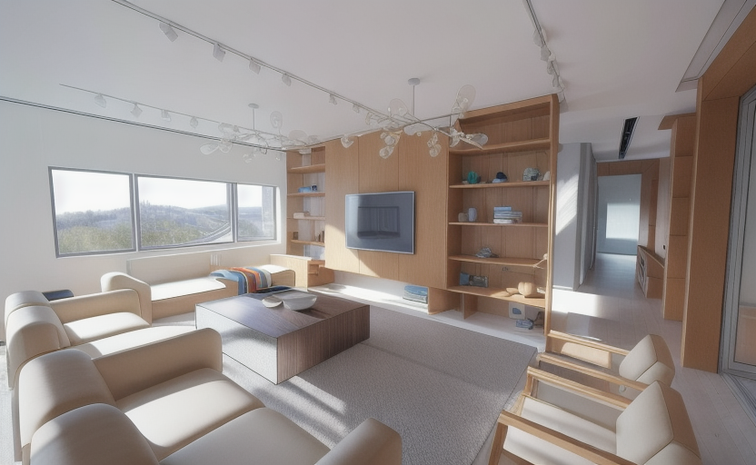 this is a multiplex dwelling which will be located in nunavut canada the environment is snowy arctic with rocks and small sized cliffs in the background maintain model geometry and aim for an 8k resolution in hyper realistic architectural visualization the atmosphere lighting should be at sunset but don t make it too dim