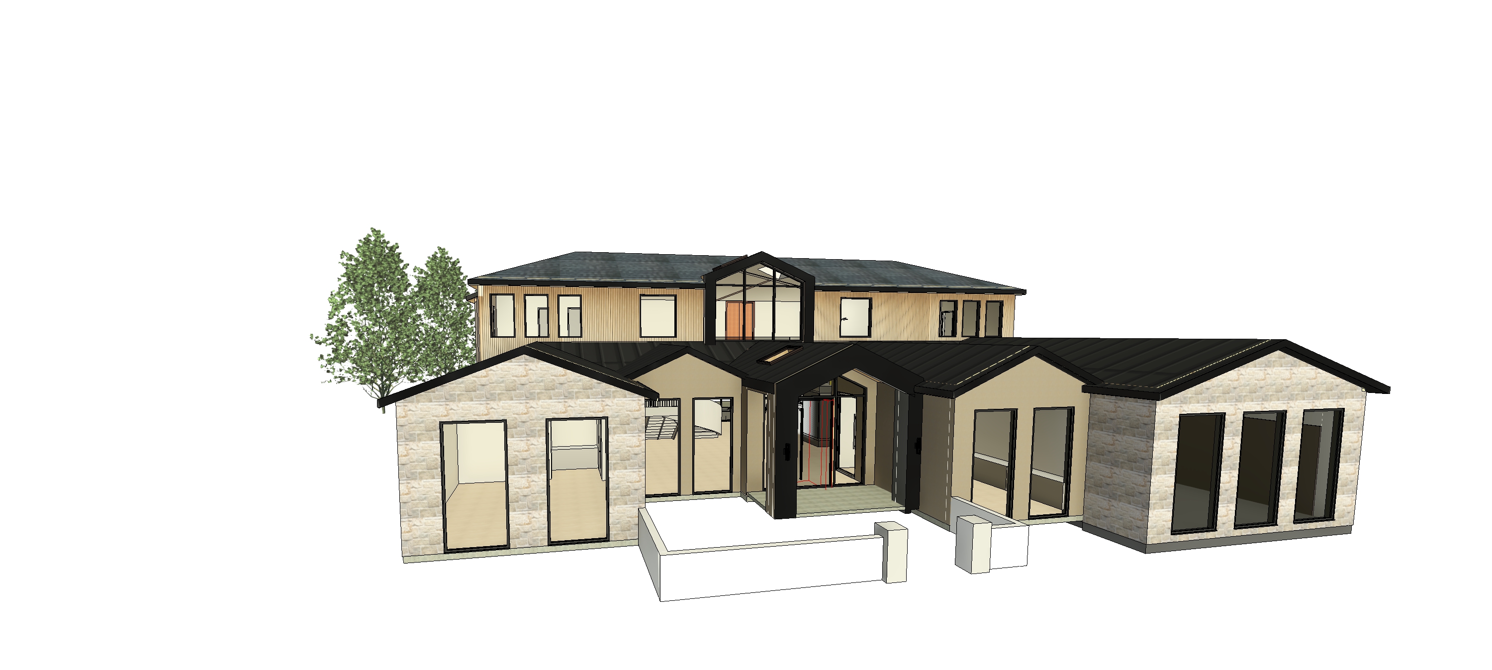 make the upper roof black shingles more natural outdoor shot less trees in the background pavers and driveway in the front