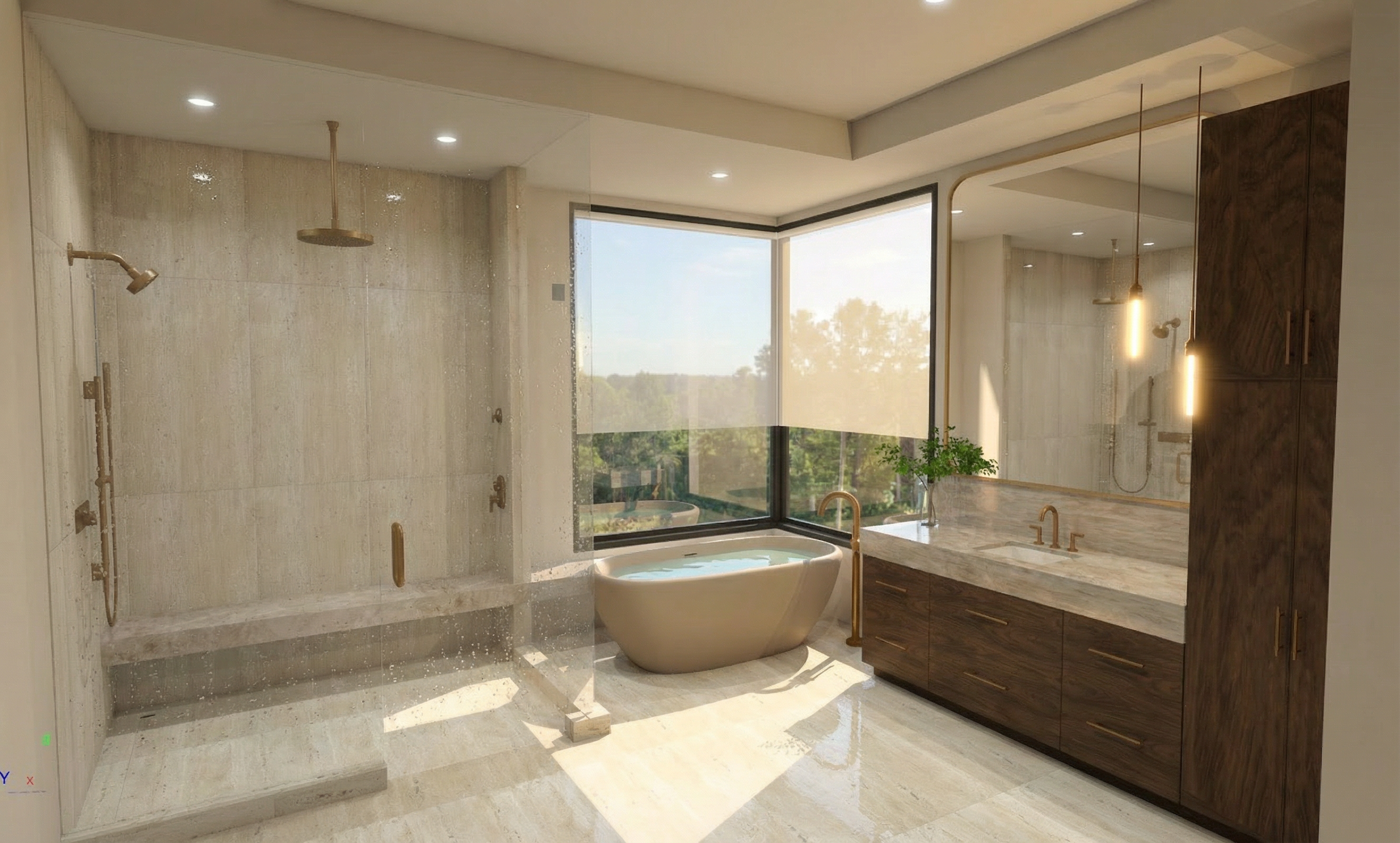 dark gray asphalt roofing shingles vertical dark smoke gray bronze metal panel siding parking lot reflections in windows