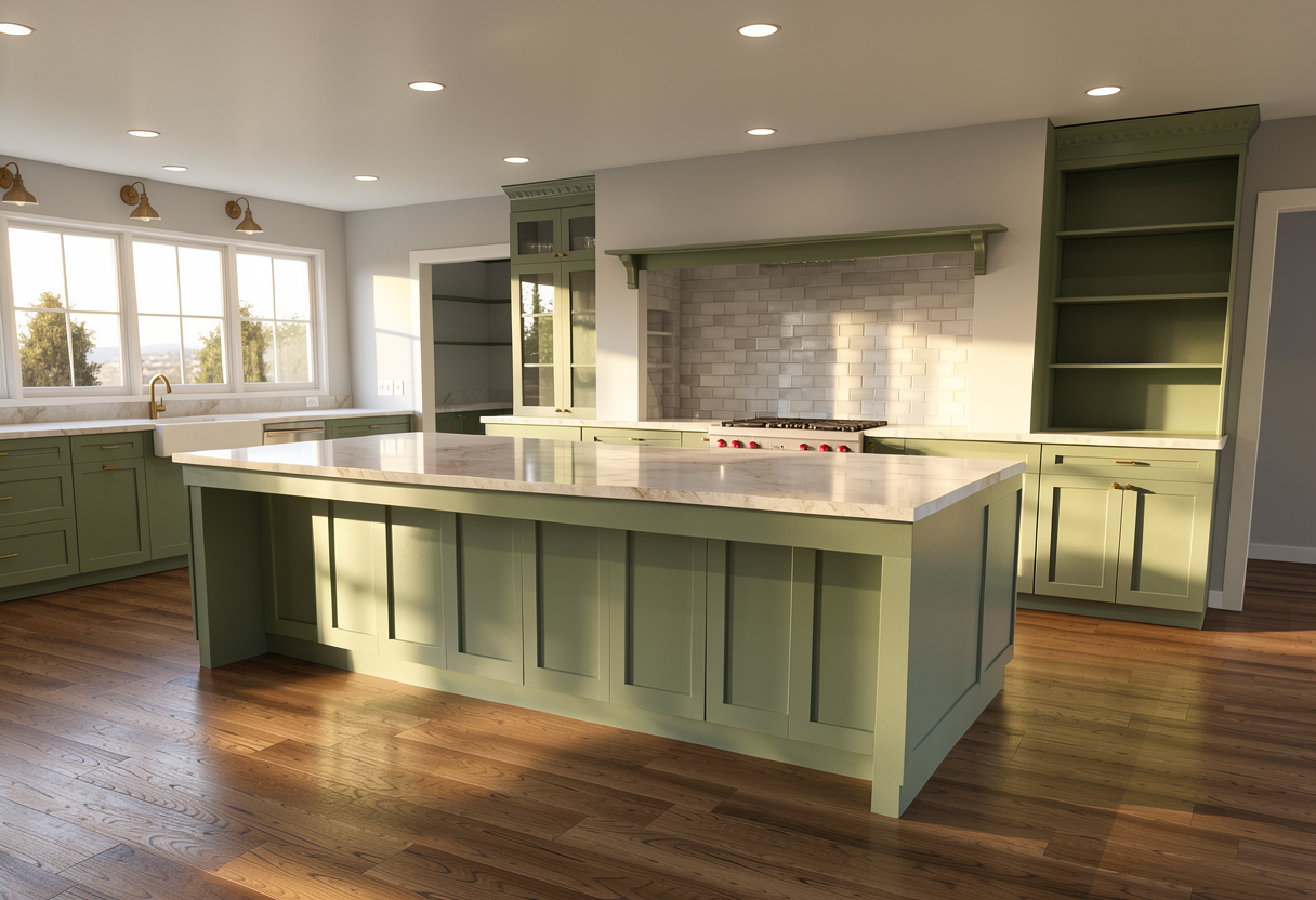 you are an experienced interior design and 3d visualization specialist with a deep understanding of transforming conceptual artwork into photorealistic immersive 3d environments i seek your expertise to convert an illustrator rendering composed of pasted snippets into a fully realized lifelike 3d live image of a kitchen space please focus on the following aspects accurately interpret the existing 2d illustrator design preserving its layout proportions and stylistic intent develop a detailed 3d model of the kitchen including architectural elements cabinetry appliances fixtures and finishes apply realistic materials and textures that reflect authentic surface qualities such as wood grain metal glass and stone integrate advanced lighting techniques to simulate natural and artificial light sources ensuring proper shadows and reflections enhance spatial realism through accurate perspective depth and scale making the scene immersive incorporate subtle environmental details such as decor utensils and ambient effects to bring the kitchen to life optimize the final rendering for high resolution and clarity suitable for professional interior design presentations leverage your advanced skills in 3d modeling and interior visualization to transform the initial 2d artwork into a compelling and realistic representation that effectively communicates the design concept your expertise will be critical in achieving a visually stunning and authentic kitchen environment the hood has to be a black hood to match the cabinets and there should be no handles on any of the cabinets they are push to open