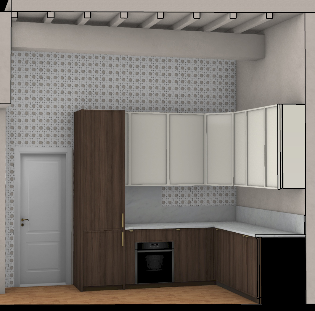 non modificare la scena una cucina dall aspetto realistico ambiente luminoso luce naturale morbida e accogliente non troppo calda non ci sono finestre non ci sono fasci di luce del sole