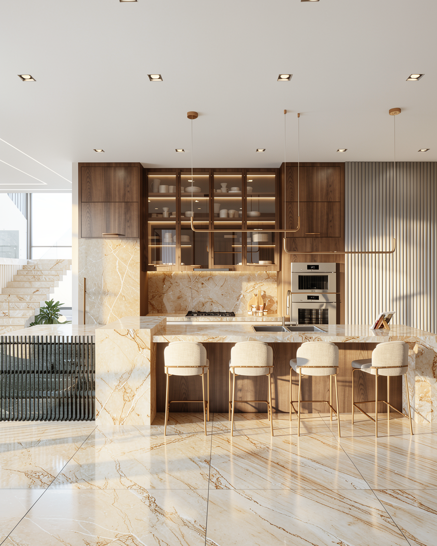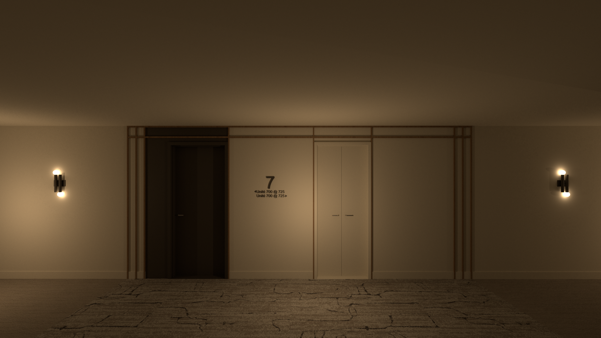 photorealistic render use the provided render as a strict reference keep exact same geometry camera angle lighting shadows materials and scene composition do not modify anything in the scene except the sofa upholstery replace only the sofa fabric using the second reference image toile de jouy pattern apply the fabric realistically with correct scale seamless repeat and natural folds preserve original lighting and shadows exactly