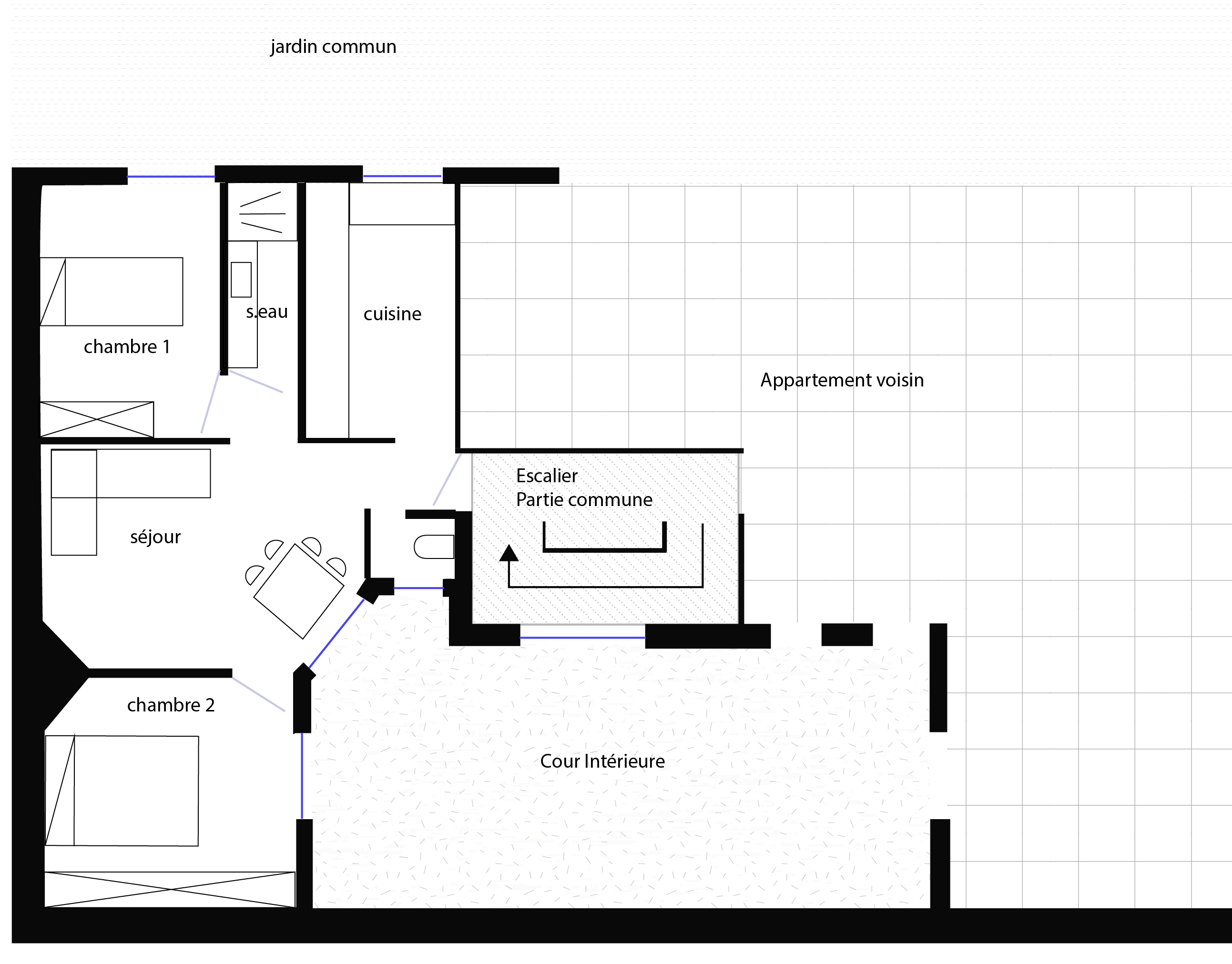 create a furnished 3d axonometric floor plan that respects the layout of the rooms