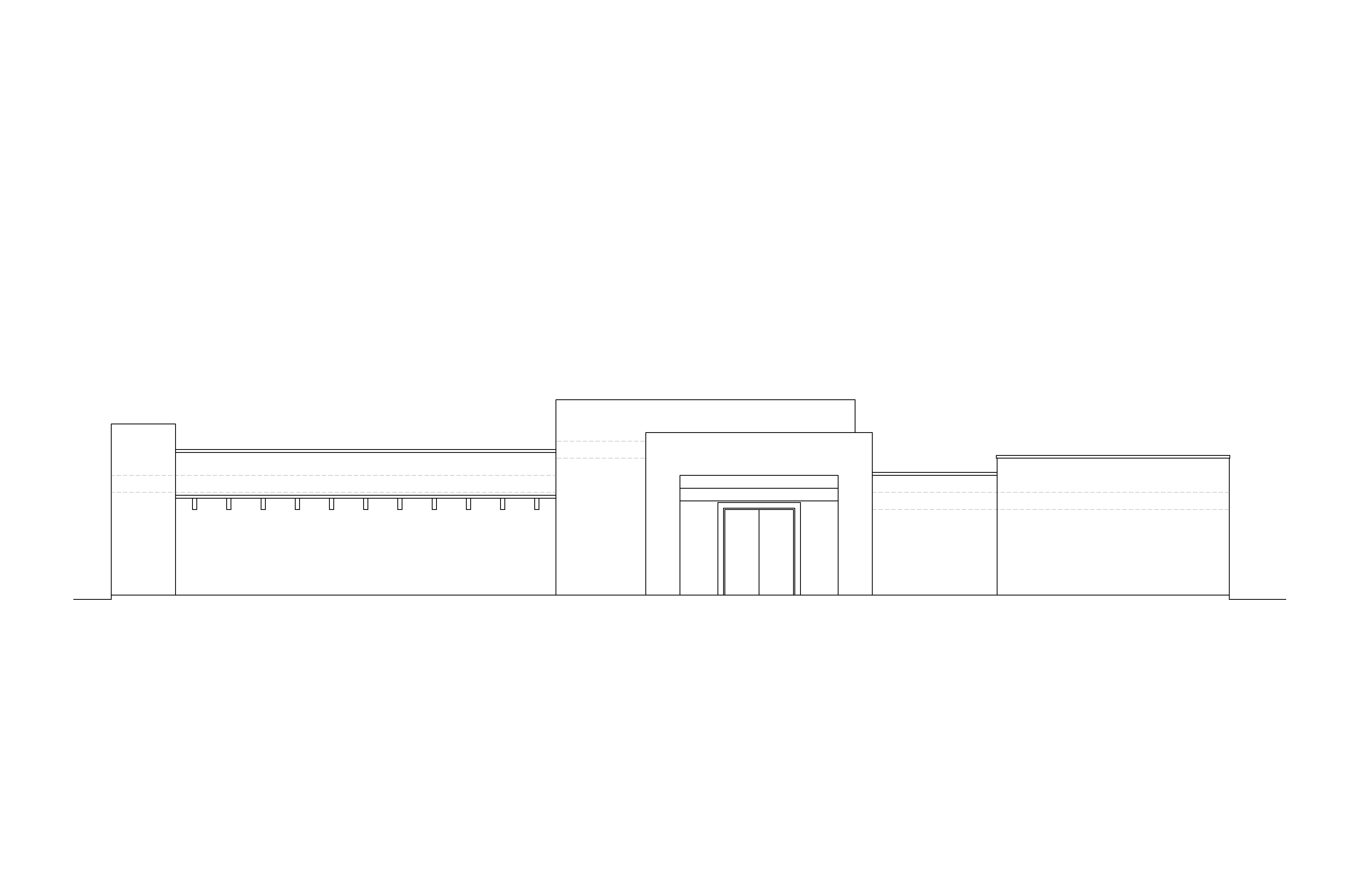 modernist exterior shot reddish sandstone blocks at entrance facade dark wood doors vertical texture at receding plane tan stucco on the right hand side place a xeric landscaping in front of the building the setting is the high desert architecture