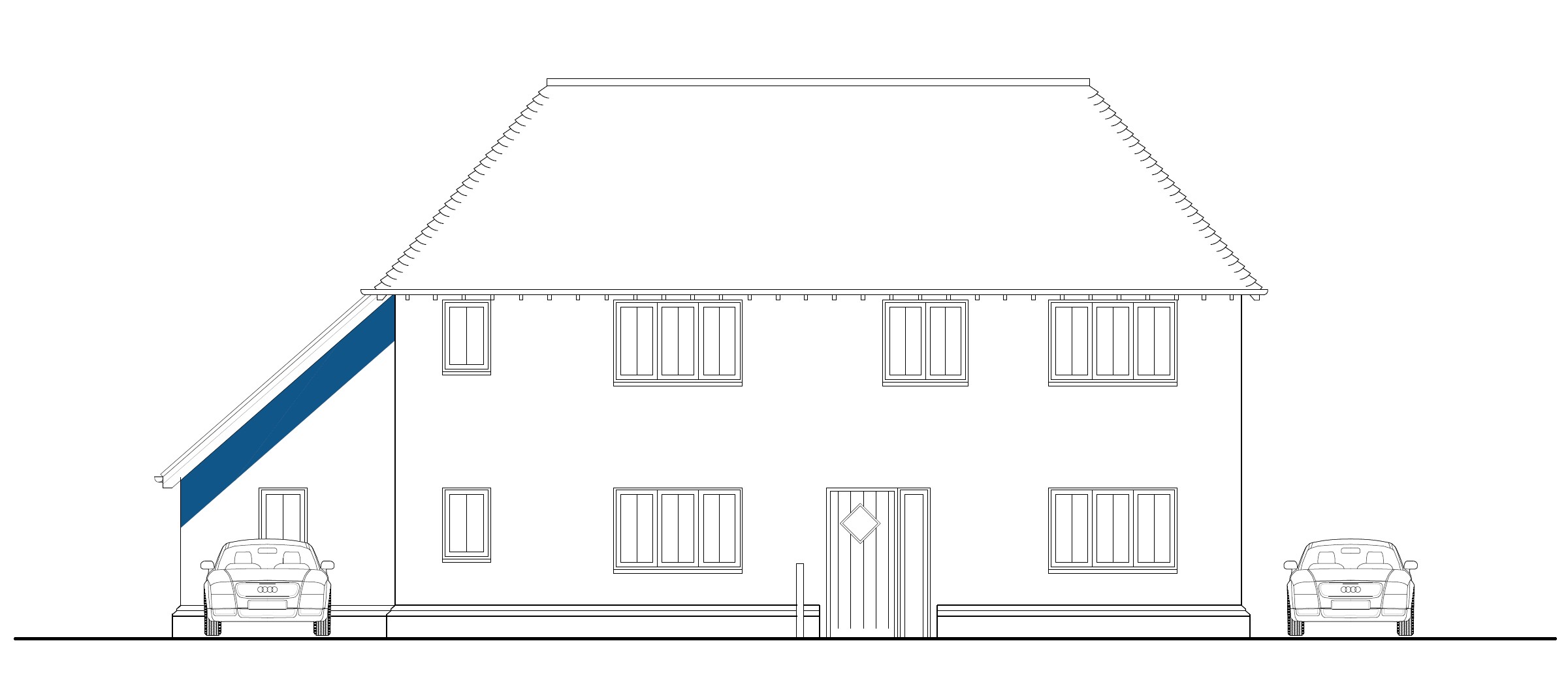 kent peg tiles to roof farmhouse brickwork black windows black fascias set in woodland people plants cars planting
