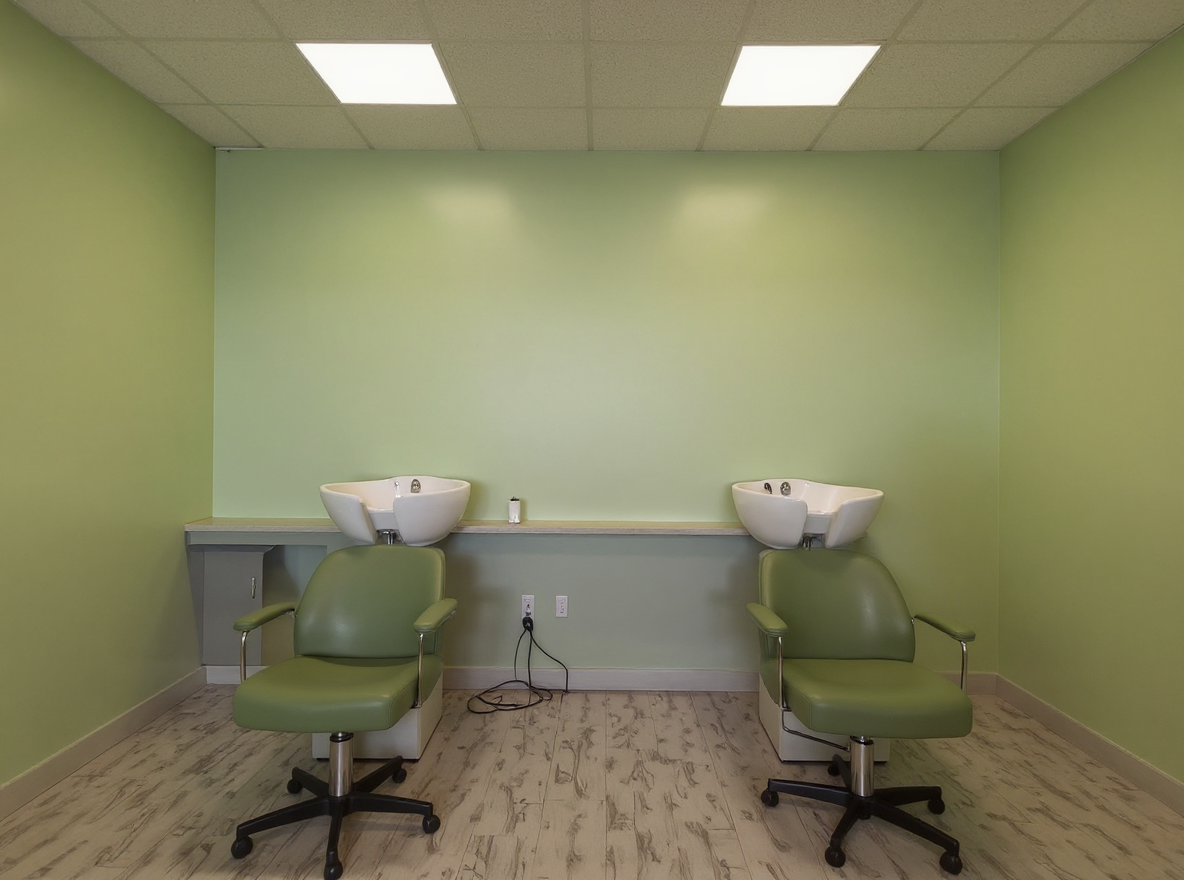 render a modern architectural building with an urban environment the building features a dynamic wavy facade with a combination of smooth glass and textured concrete use soft muted grays for the concrete and reflective blues for the glass incorporate lush greenery with deep green trees along the sides highlight the street with soft asphalt gray and subtle white curbs adding a sense of tranquility to the urban setting the atmosphere should be calm and slightly overcast with diffused lighting to bring out the architectural details beautifully