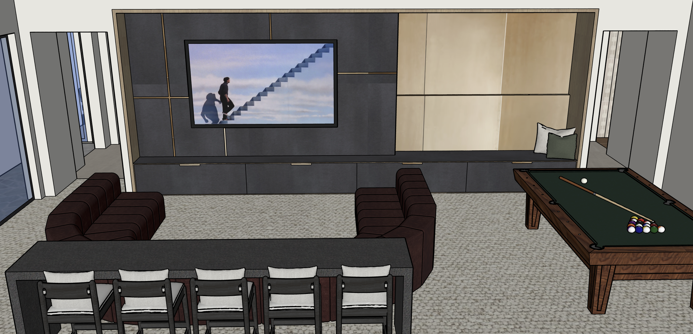 tile to right of tv wall should be shine brass brass inlay in black cabinets behind tv