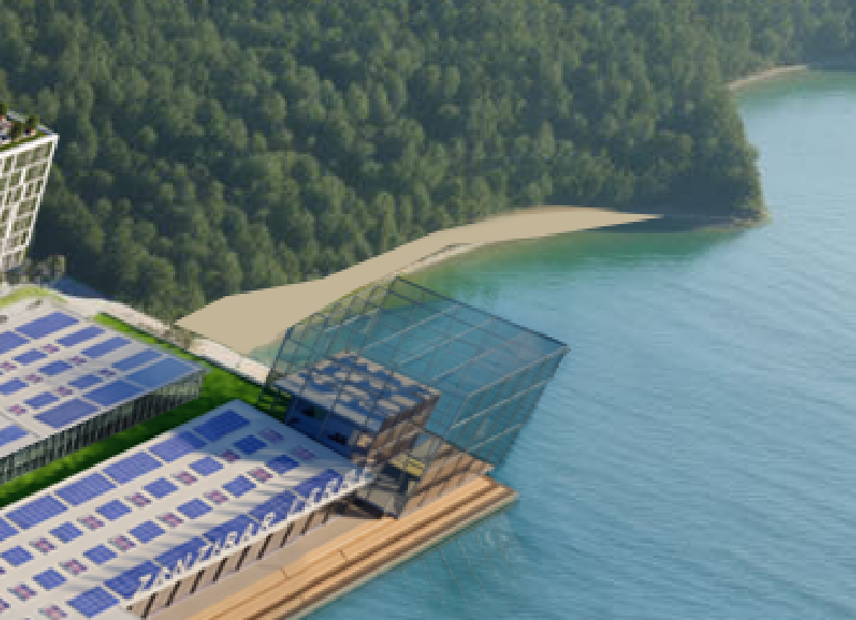 add beach to shore line with trees gradually connecting on to the beach