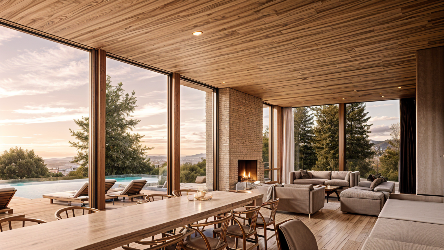 mediterranean revival interior shot create a home bar made out of wooden cabinets and estriado glass doors add upper cabinets the color is olive gray add a wine fridge cellar on the left lower side add a mini boat in the top shelf no shelves on the side walls architecture