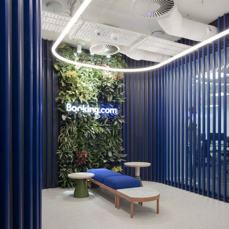 interior shot a modern interior space featuring a minimalist design with a soothing atmosphere the focal point is a vibrant deep blue accent wall enriched with textures adjacent is a lush vertical garden with various shades of green adding a touch of nature