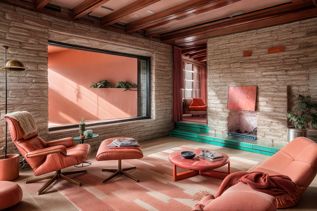interior shot render the living room realistically with the colour palette from the reference image