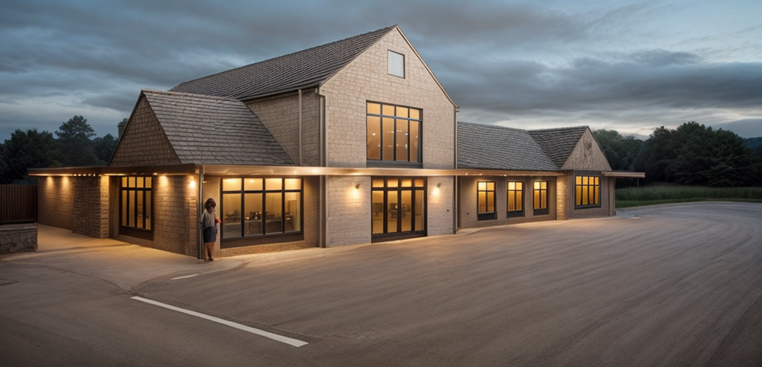 render a modern building exterior representing a swimming federation featuring a sleek professional atmosphere emphasize a blue facade with a dominating navy deep blue sign displaying the federation s name in bold white lettering illuminate the text with a soft glow for emphasis include large cyan glass windows on the front but transparent through the glass we can see the reception as it appears already showcase vibrant digital displays within these windows highlighting a variety of swimmers in action against a bright blue aquatic background the surrounding pavement should appear smooth and clean the overall atmosphere should exude professionalism and dynamism with a focus on aquatic sports
