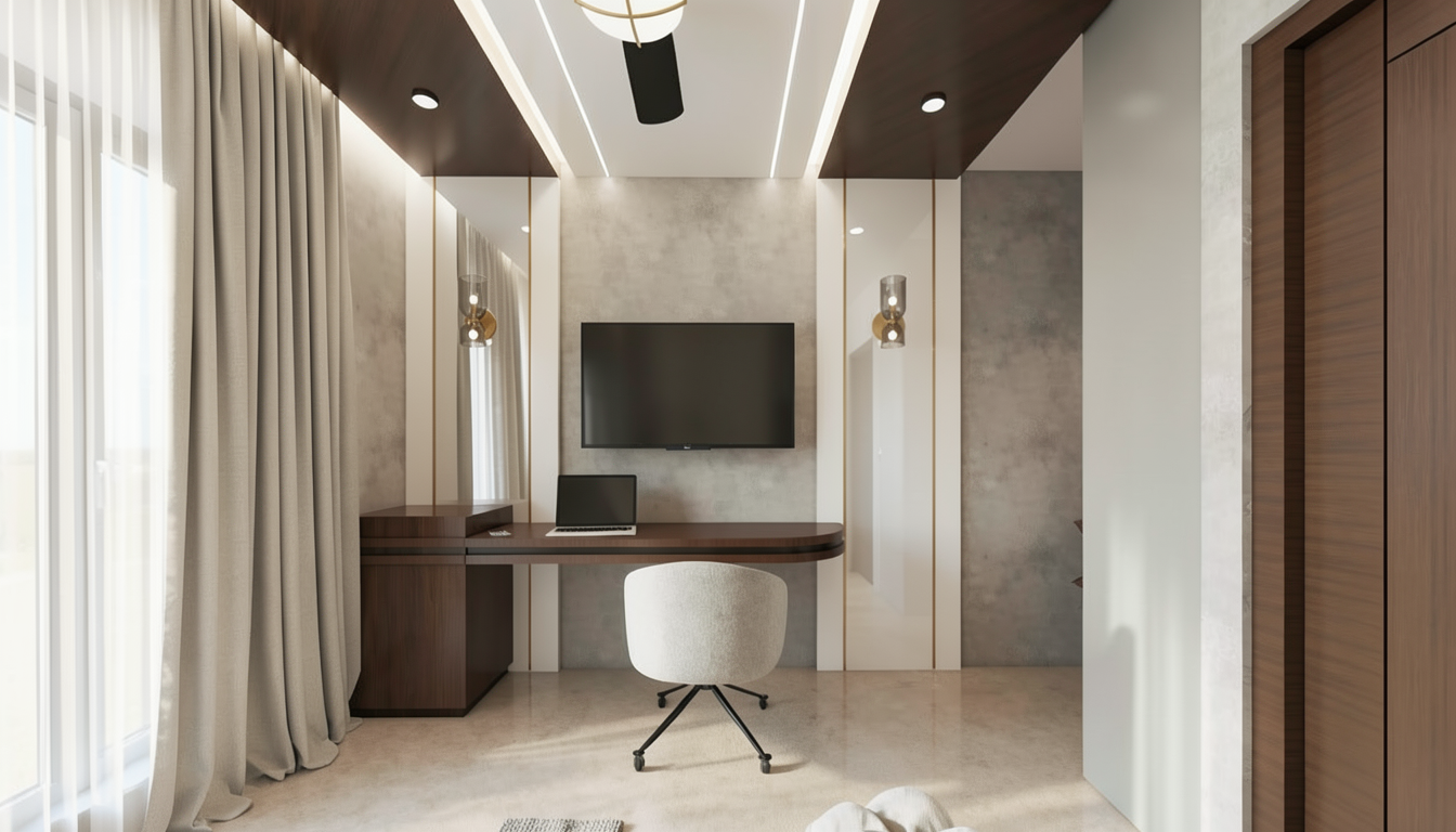 only remove the left wall projection add one floor to ceiling rear window behind the tree and change the door handles to light silver keep everything else unchanged except for the scandinavian material restyling