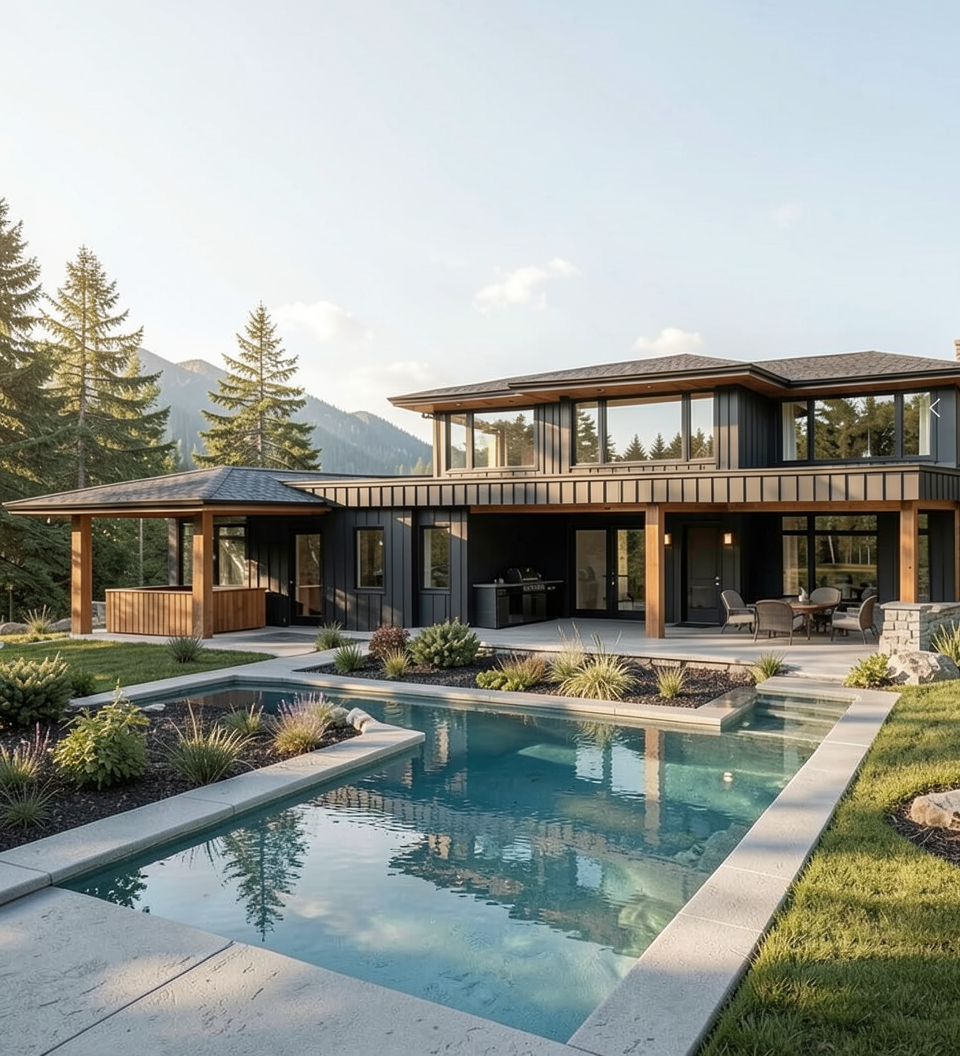 lease add tp the right the dining table with star black steel legs and 6 chairs in the light brown color change the island to be without the visible plinth on the lateral