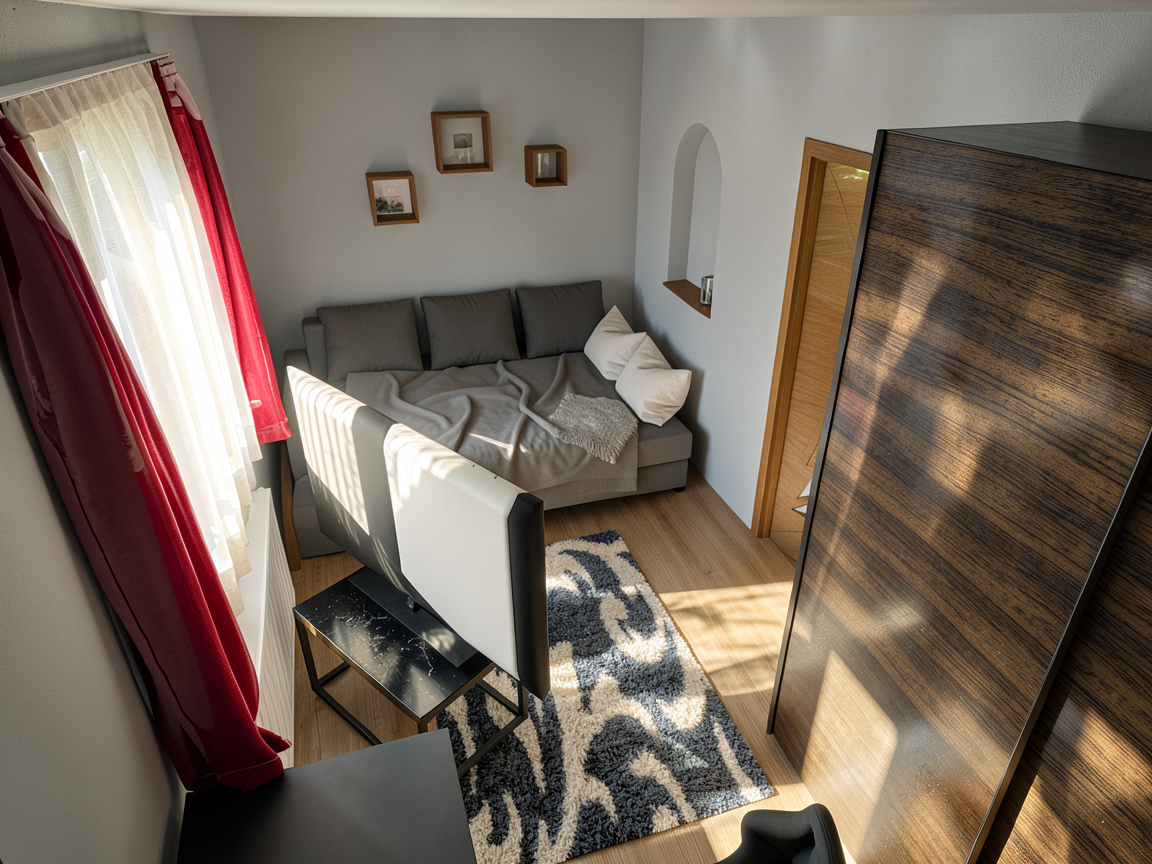 prairie outside with mountains far off in distance add art above bed add curtains but show open