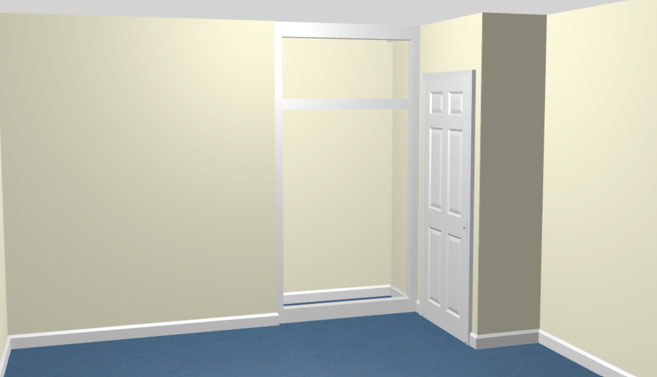 this is a wardrobe in an alcove make the fitted furniture light cream in colour make the internal walls white make the flooring light grey carpet