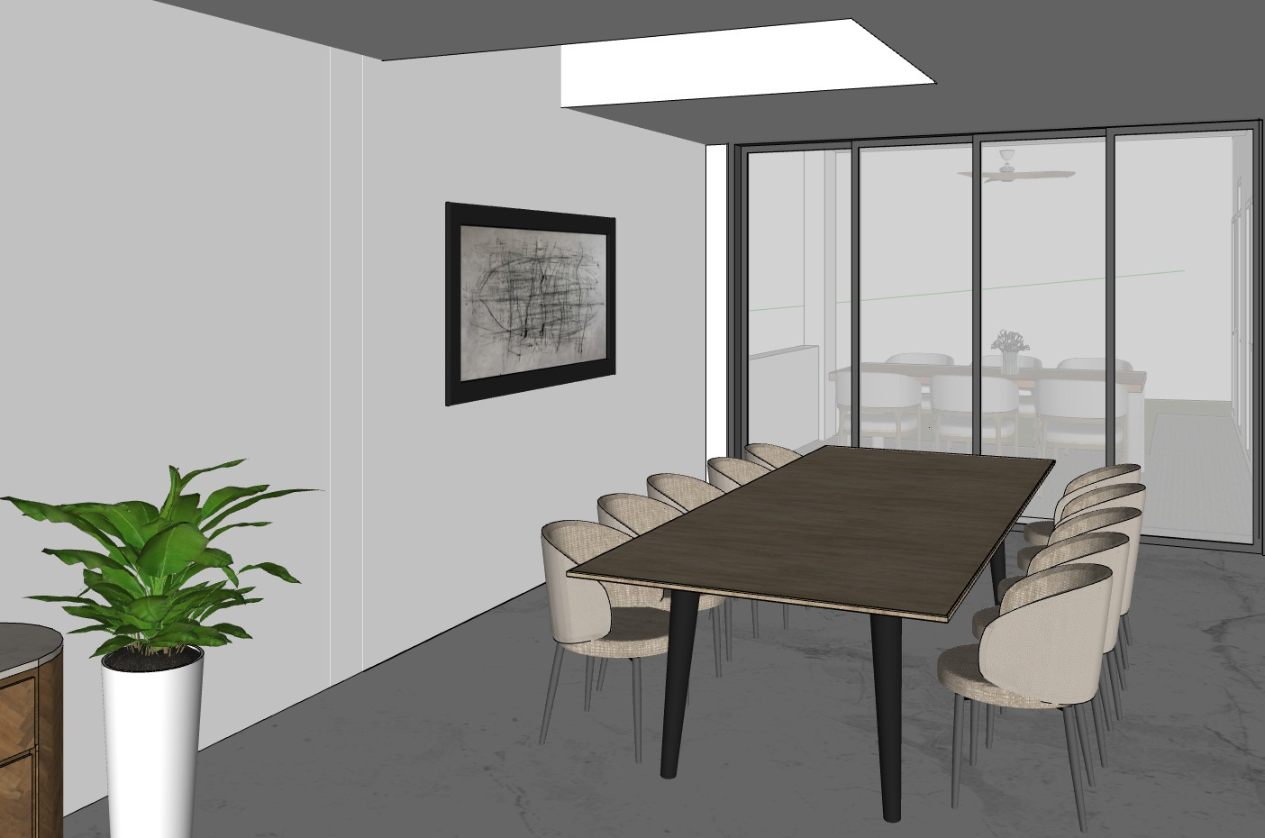no line at the wall plain ceiling have a void the void follow the picture size the outside og the dliding door is outdoor dont need tree