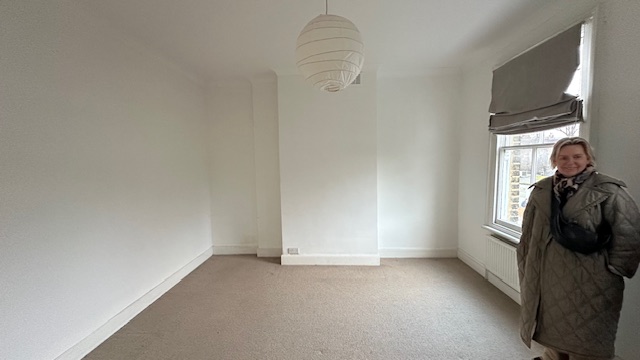 put built in wadrobes all along the back wall across the chimney breast in a modern neutral style off white