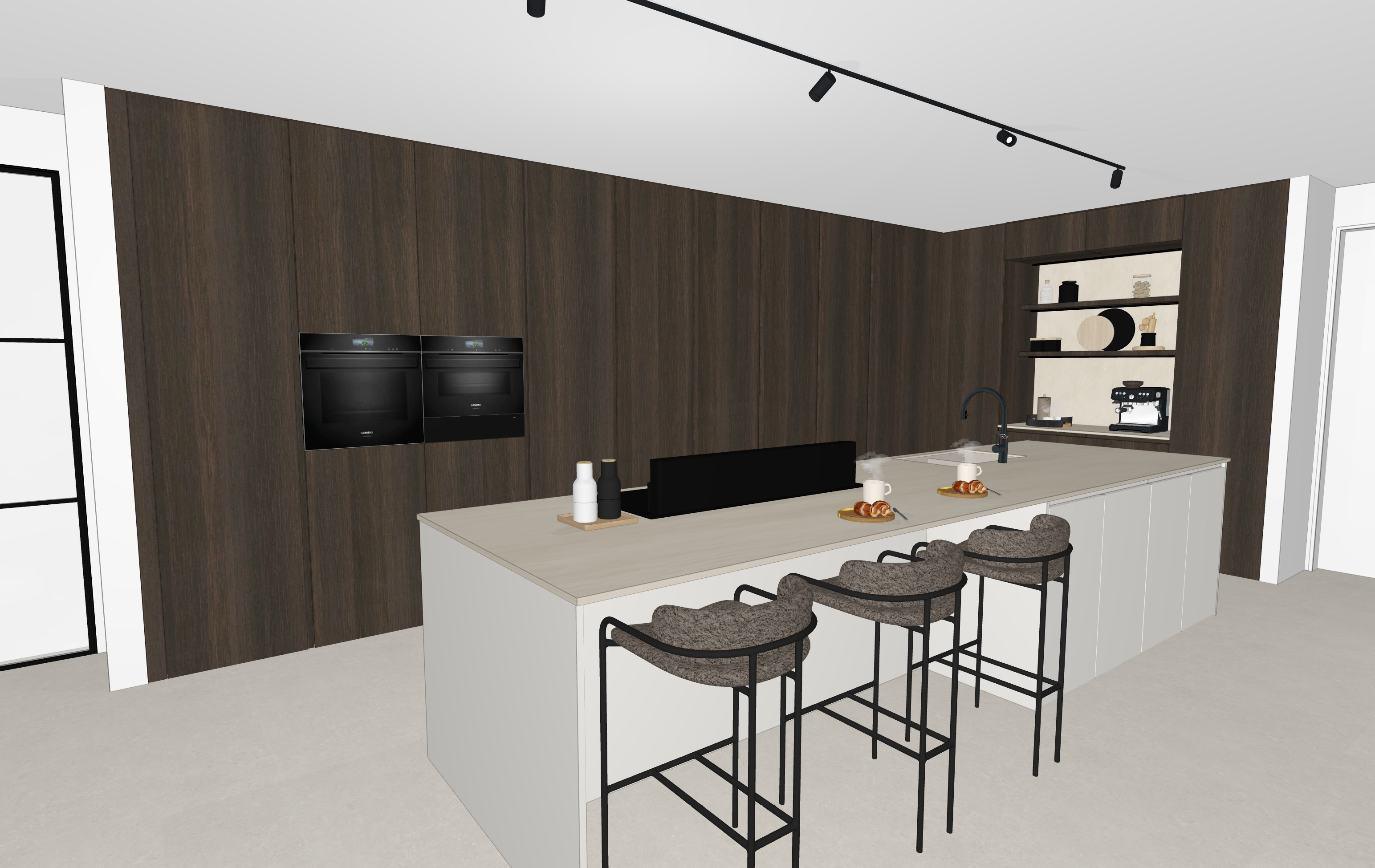 decorate kitchen beige countertop black appliances leds