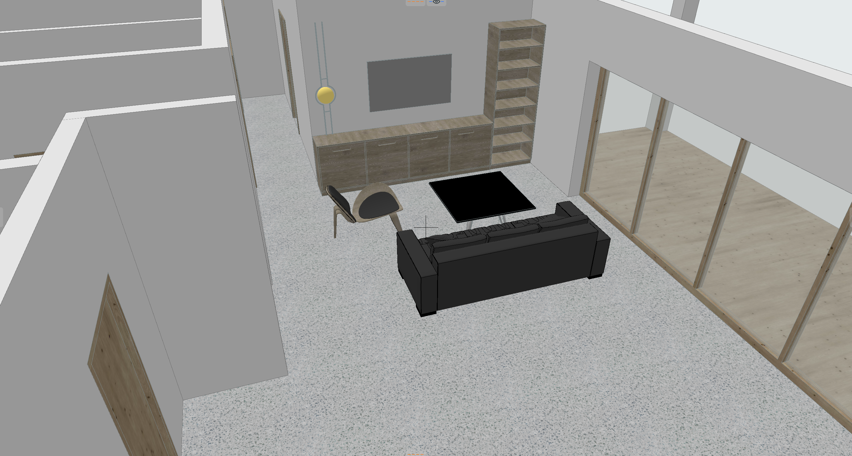 modern interior shot make render in mid century modern style and add plants and decor architecture