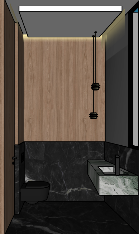 add led lighting in the celling the marble is black the sink is a green marble