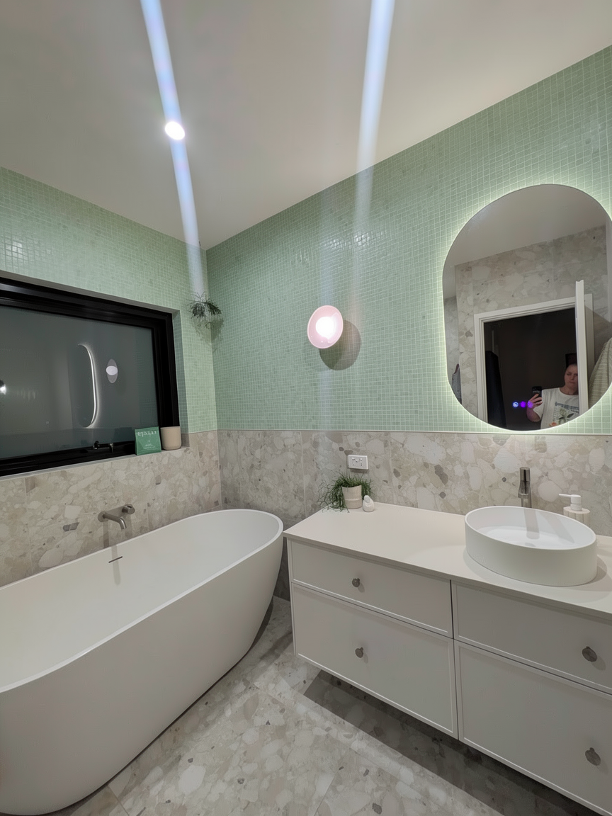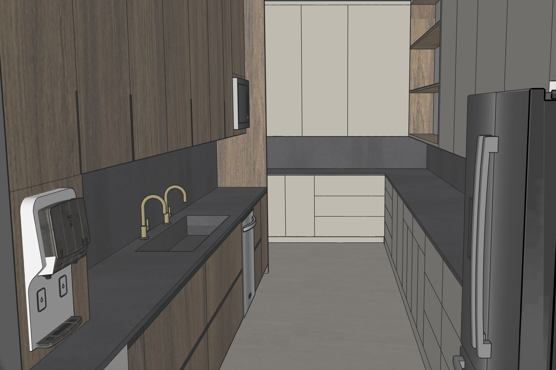 under cabinet lighting throughout make all cabinet to right of photo and back of photo light taupe