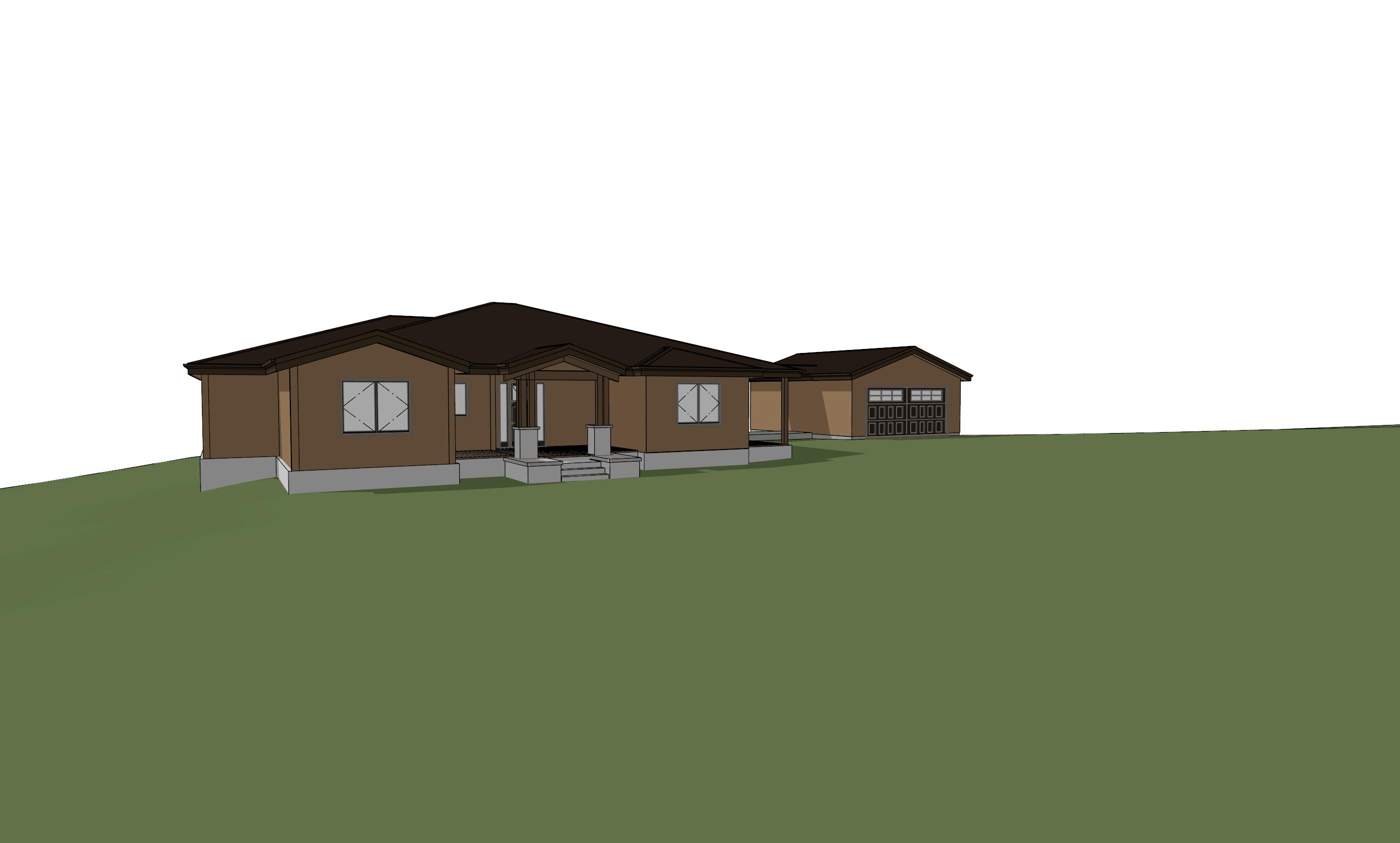 make exterior wood board and batten and roof to be dark brown metal rock below board and batten