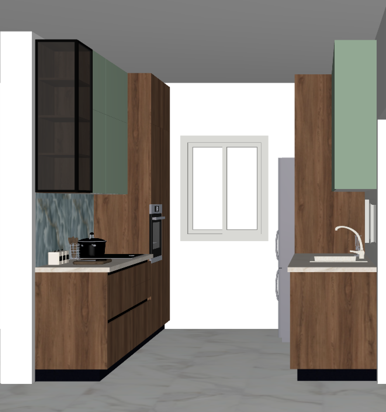 just a super realistic render with warm lights and a nice view out side