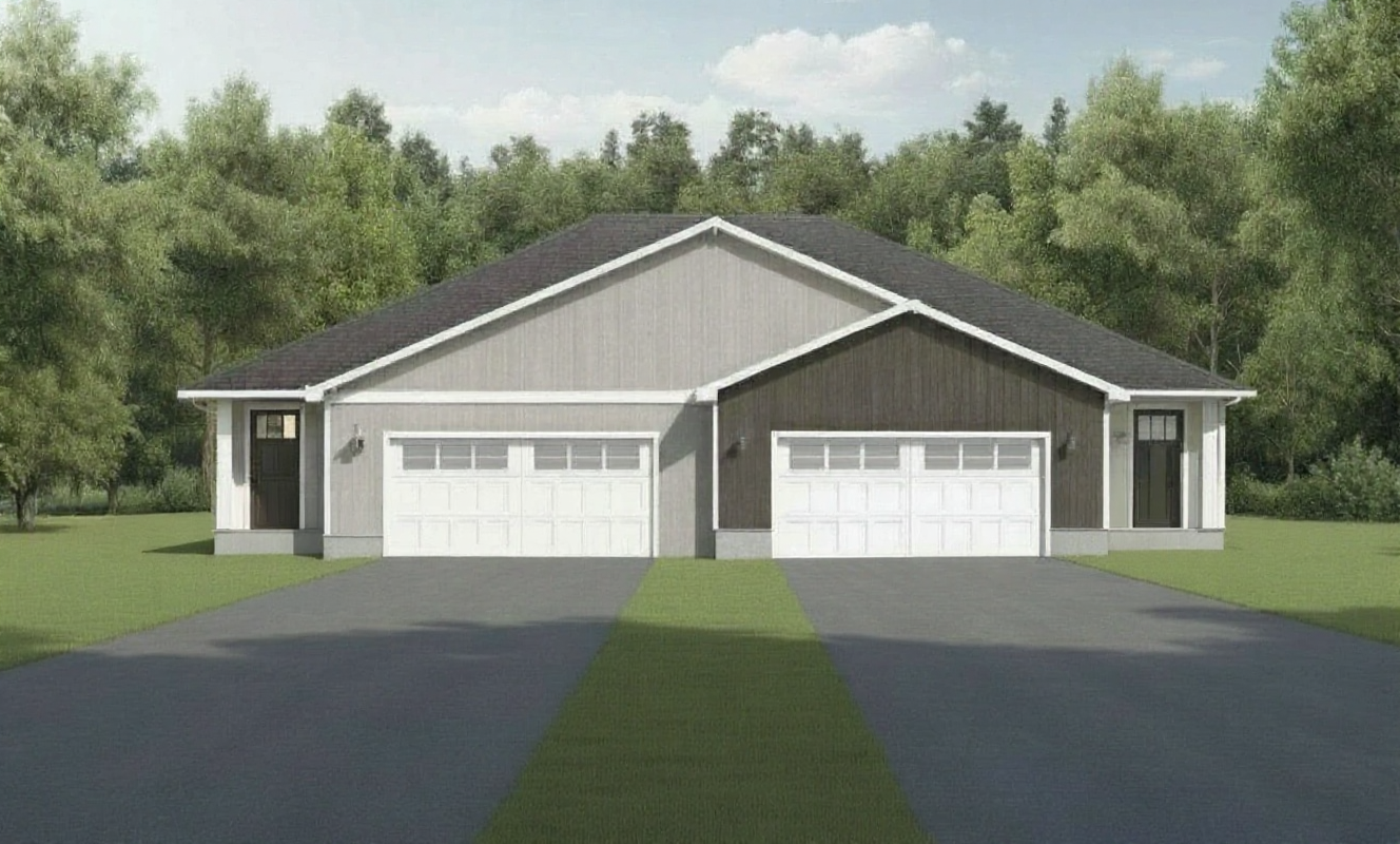 a manicured lawn low maintenance shrubs native plants concrete path leading to the entrances