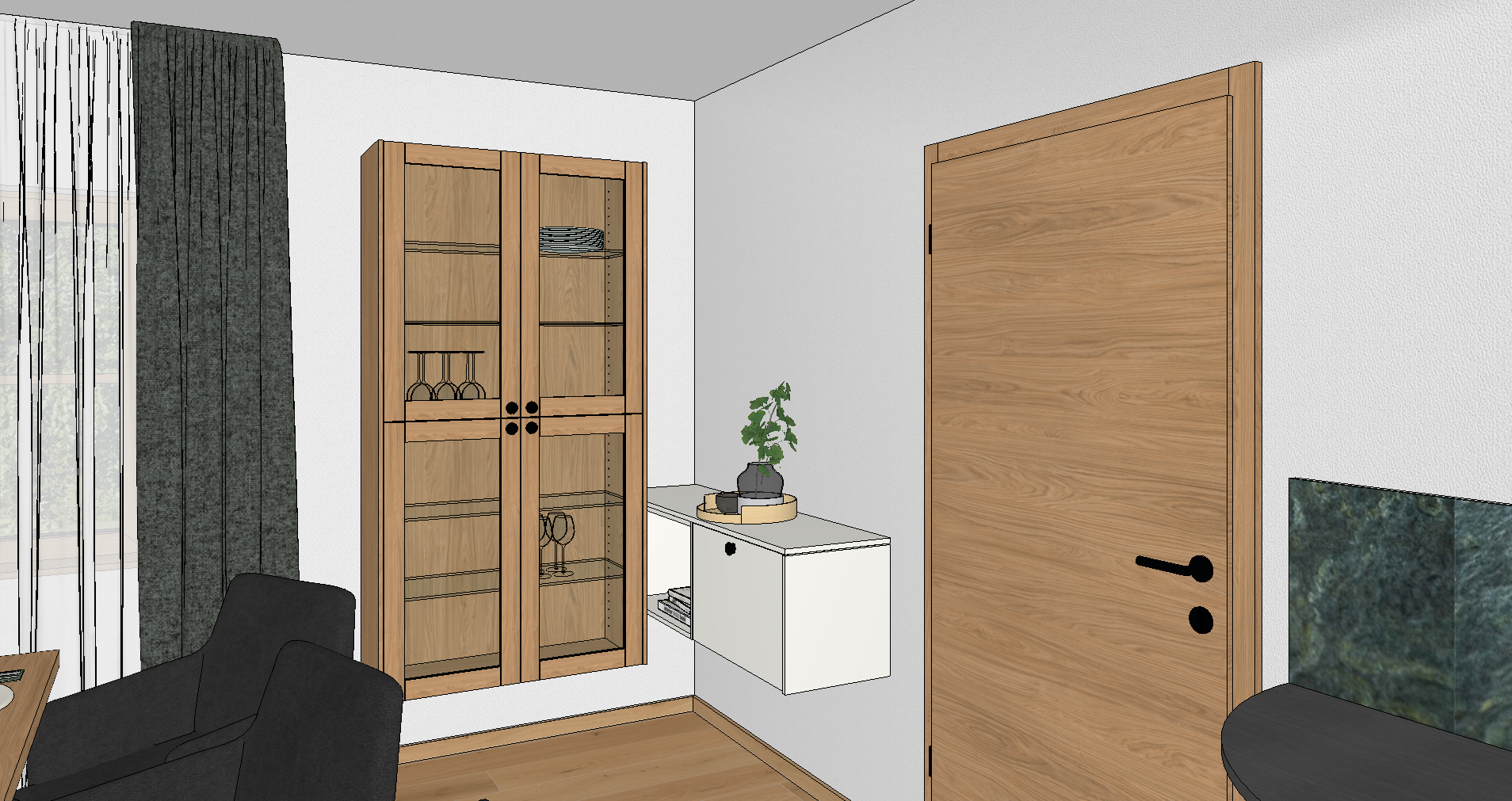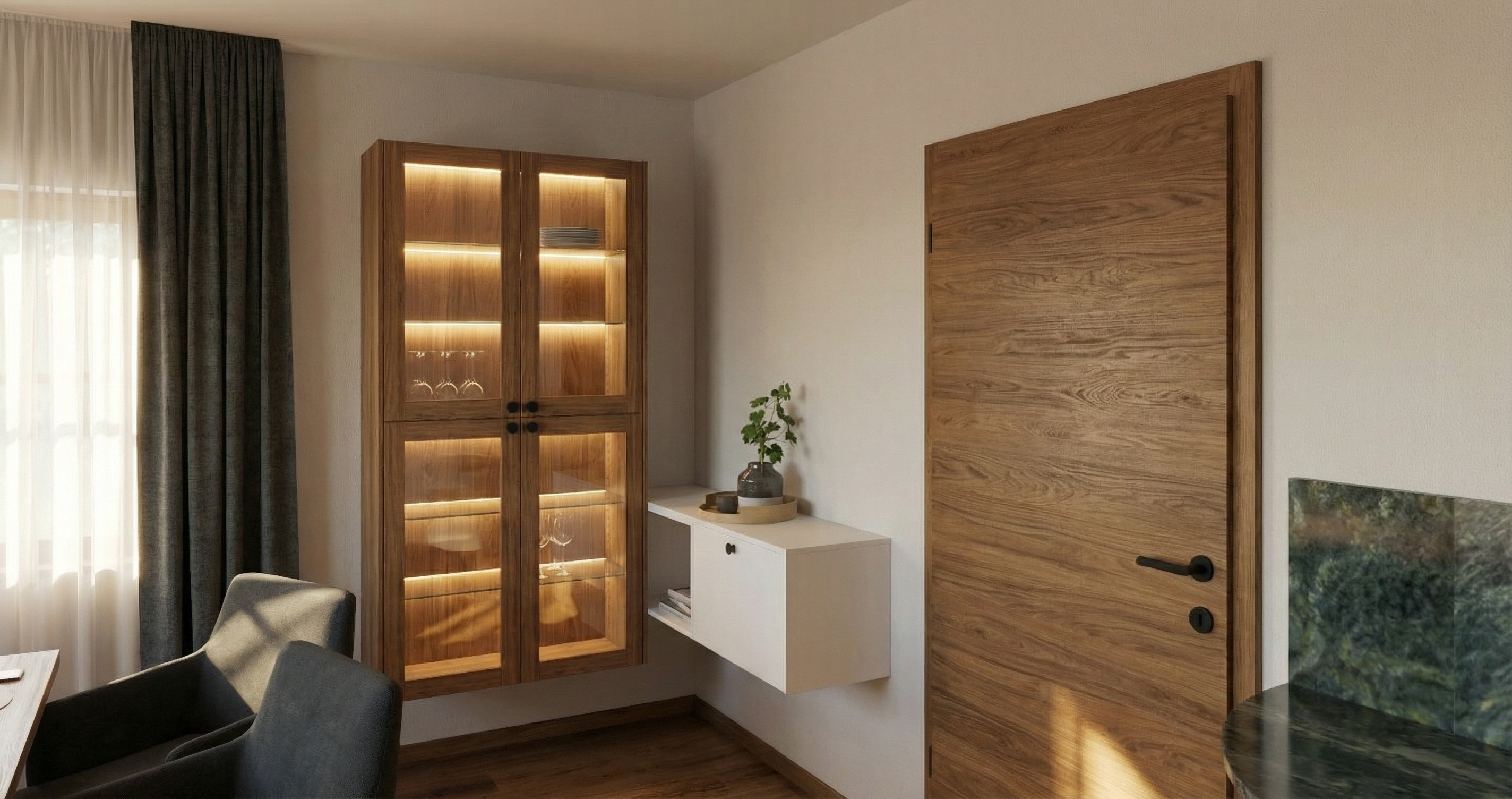 add perpendicular lightening in the glass cabinet